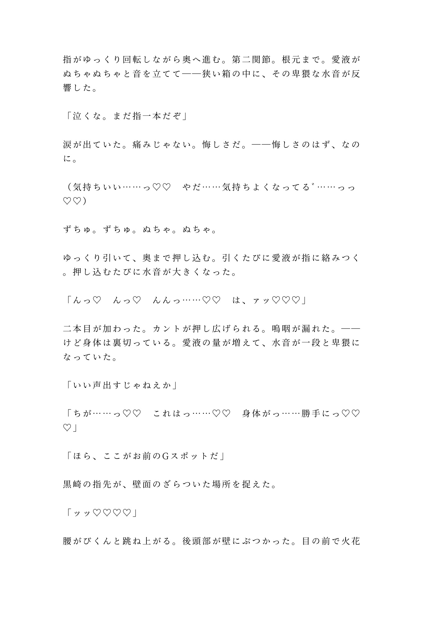 一度も自分で触れたことすらなかった場所を、太い指が暴いていく。初めての快感に理性が軋み、抵抗する声はいつしか甘い嬌声に変わり、鏡面仕上げのステンレス壁が乱れた自分の姿を映し出す。「録画データは俺が管理してる。消すも残すも、俺次第だ」——恐怖と背中合わせの興奮が、透を深い沼へと引きずり込んでいく。