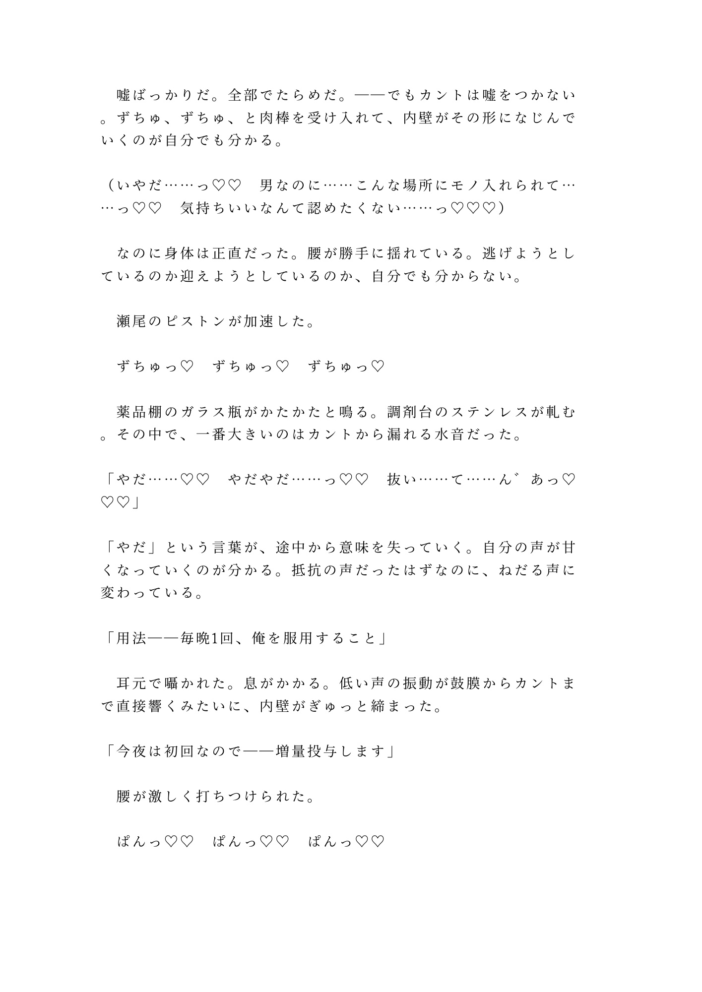 [RJ01568657] (ヘブン) 「お薬の時間ですよ」閉店後の調剤室で薬剤師に処方された四回の中出し臨床試験で毎晩通院する身体にされた話