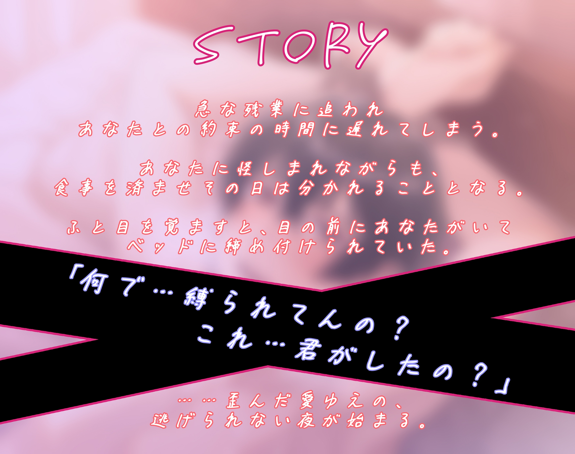 【なんで…縛られてんの? これ…きみがしたの?】…ふと目を覚ますと目の前にあなたがいて、ベッドに締め付けられていた。 歪んだ愛故の、逃げられない夜が始まる