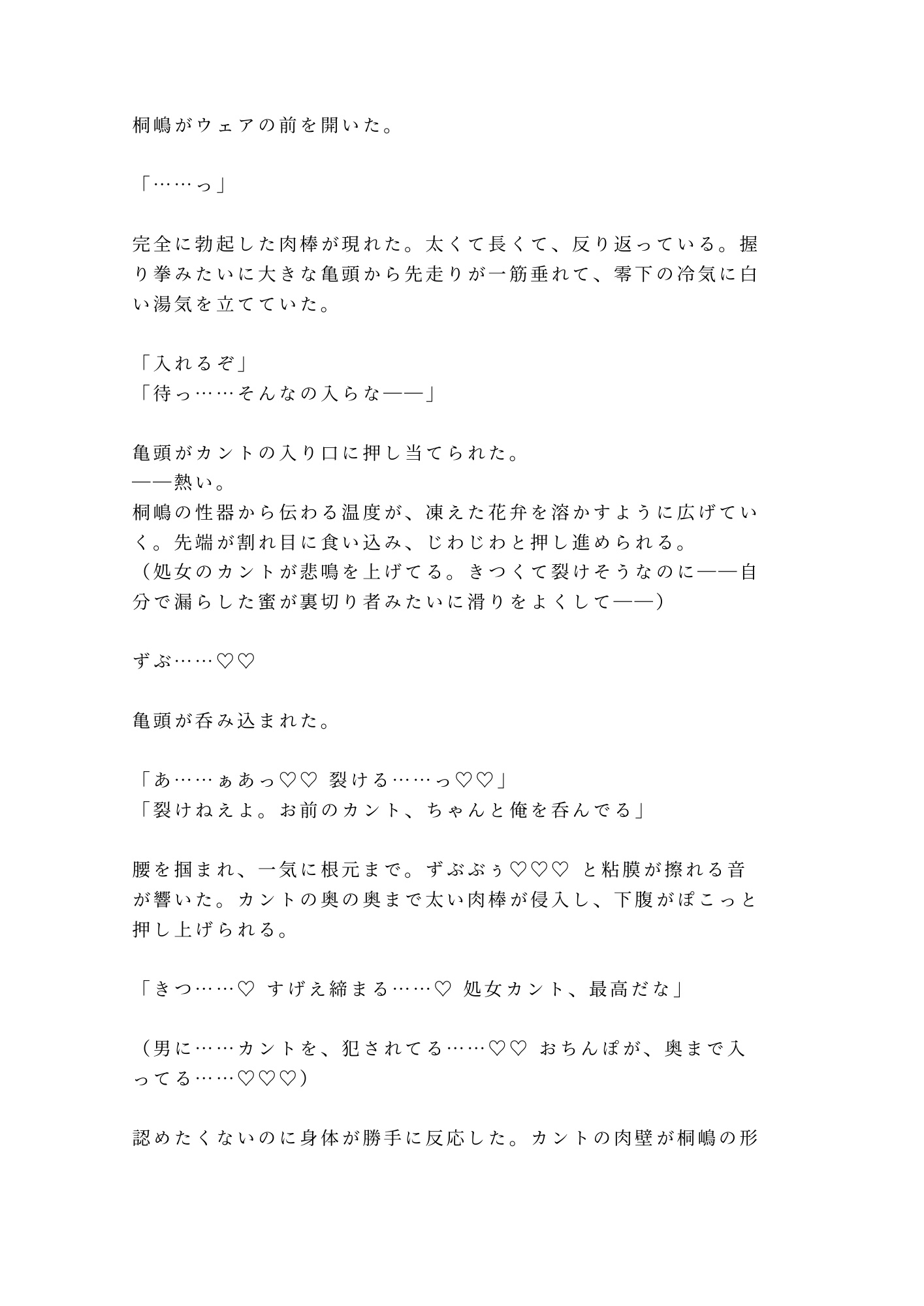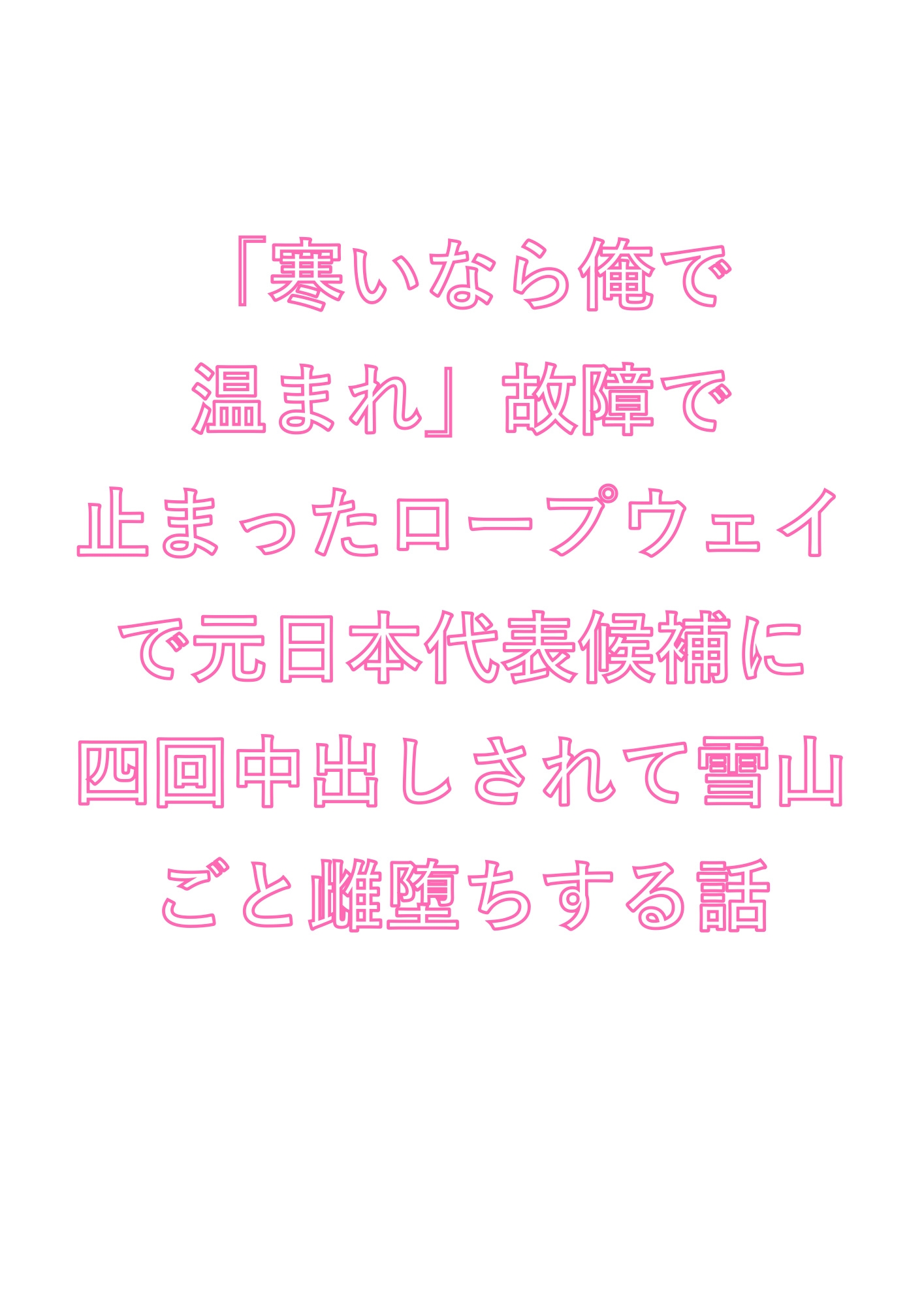 雪山育ちの鬼畜インストラクター×秘密を抱えたカントボーイ。復旧までの一時間で、処女喪失から雌堕ち完了まで一気に駆け抜ける、極限密室カント堕ち小説。氷点下の外気と火傷しそうな体温の温度差が、すべてのページで肌を粟立たせます。