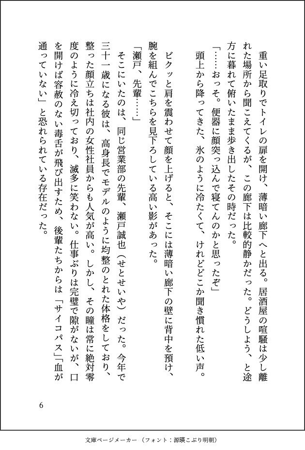 社内で「サイコパス」と恐れられる冷徹なエリート先輩・瀬戸誠也。