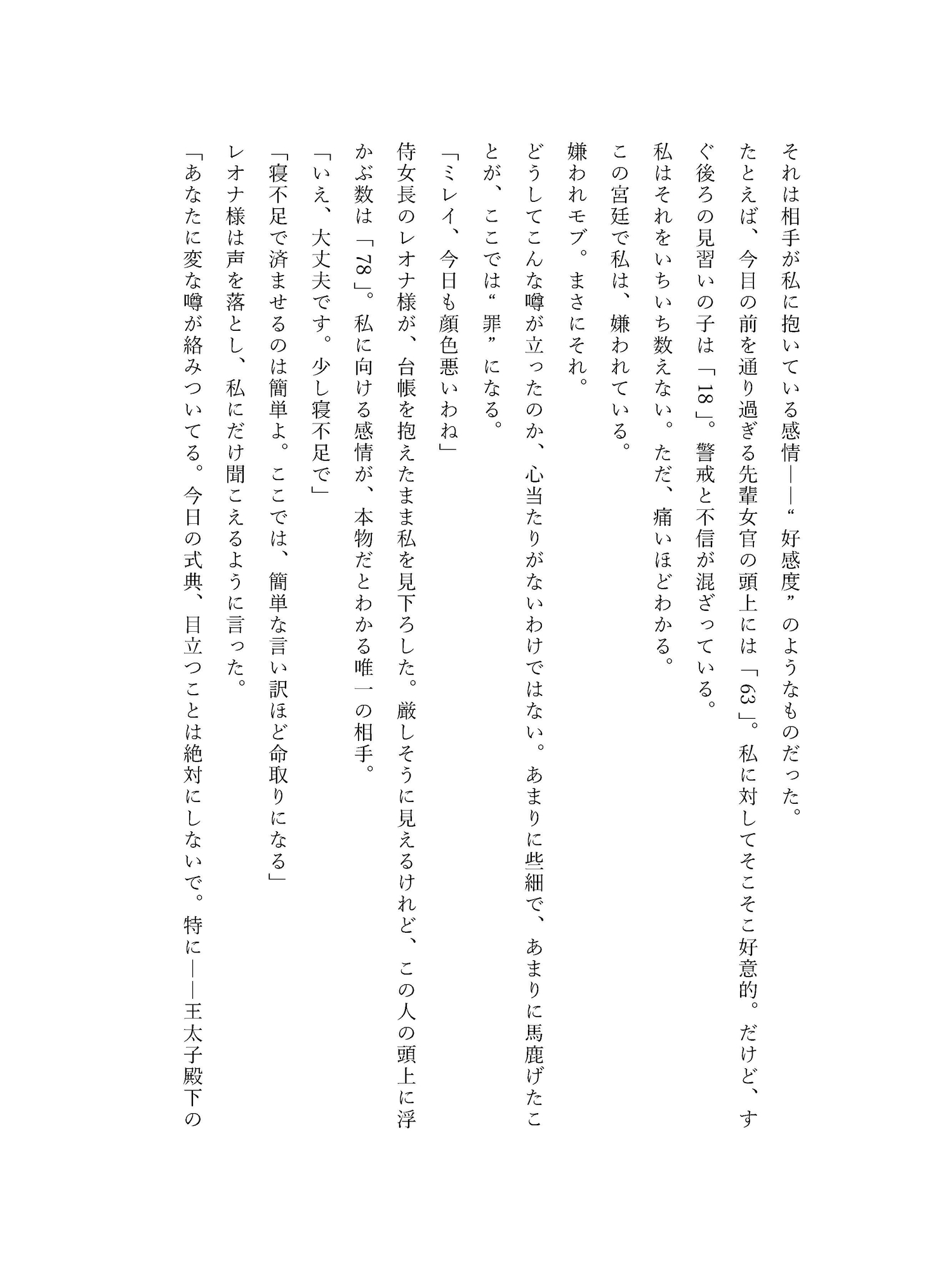 王宮で「嫌われモブ」として生きる下級女官ミレイ。彼女には、他人の“好感度”が数値で見えてしまう秘密があった。