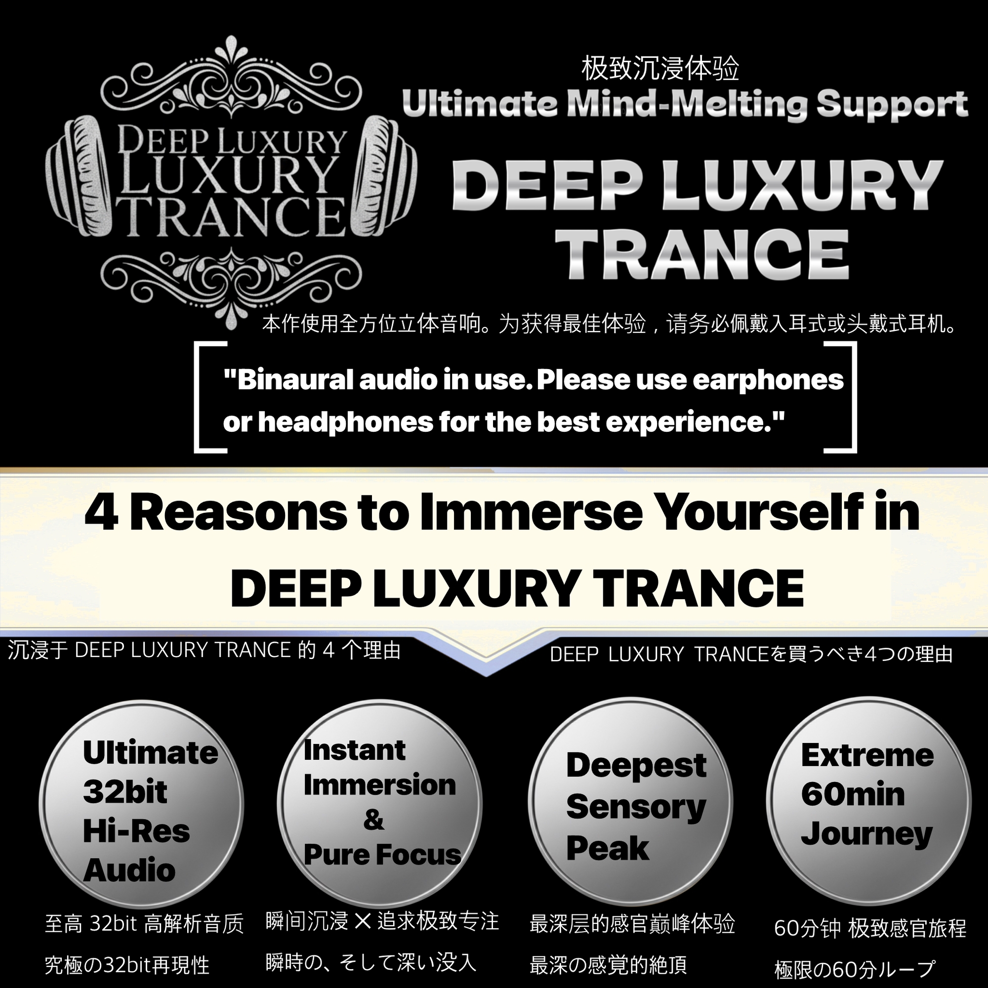 Listening in a quiet, dimly lit space will further enhance immersion.DEEP LUXURY IMMERSION: Binaural Breath & Rich Textured Sounds