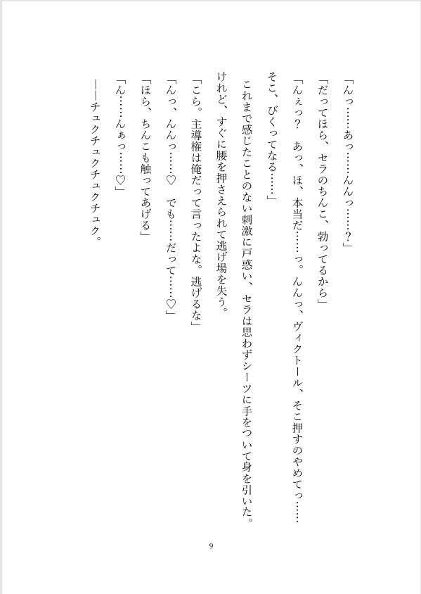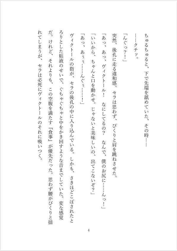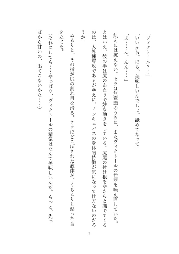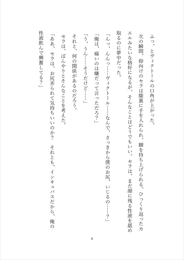 インキュバスである自分が相手を組み敷く――はずだったのに、なぜか主導権を握るのはヴィクトールで、セラはお尻をいじられ、実験めいた手つきと甘い言葉に翻弄されていく。