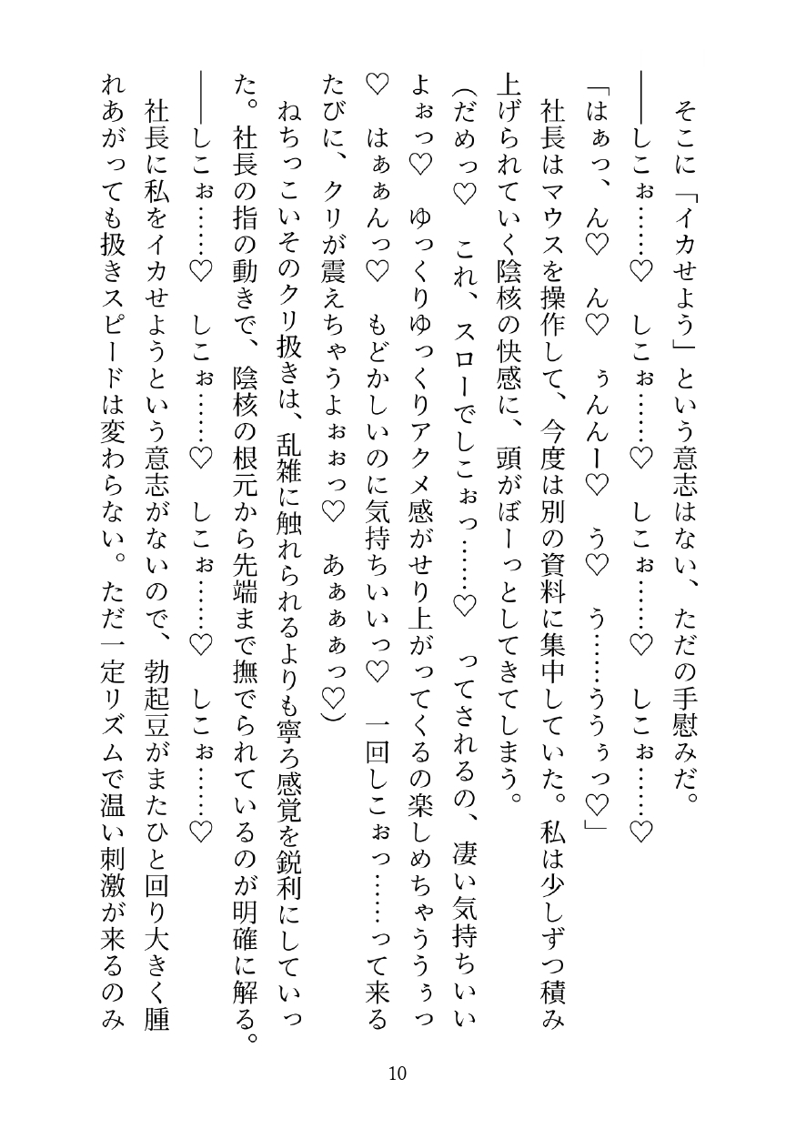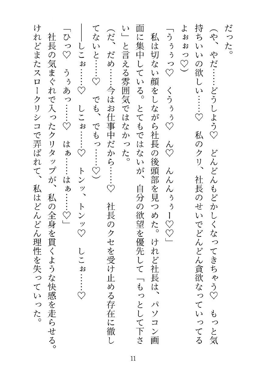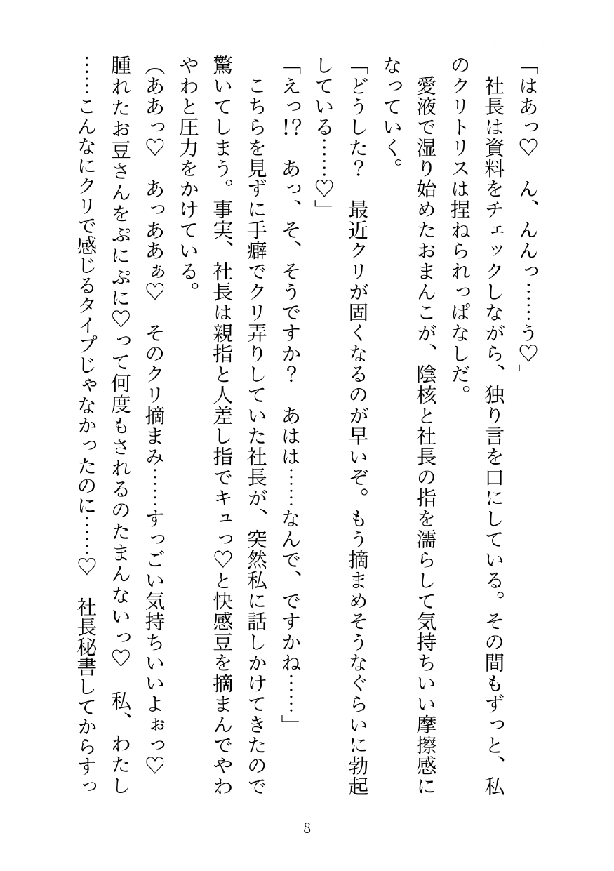 変なクセから始まった容赦ないクリ弄りでおかしくなったヒロインが、最後は社長と濃厚玩具セックスしてしまう話です。