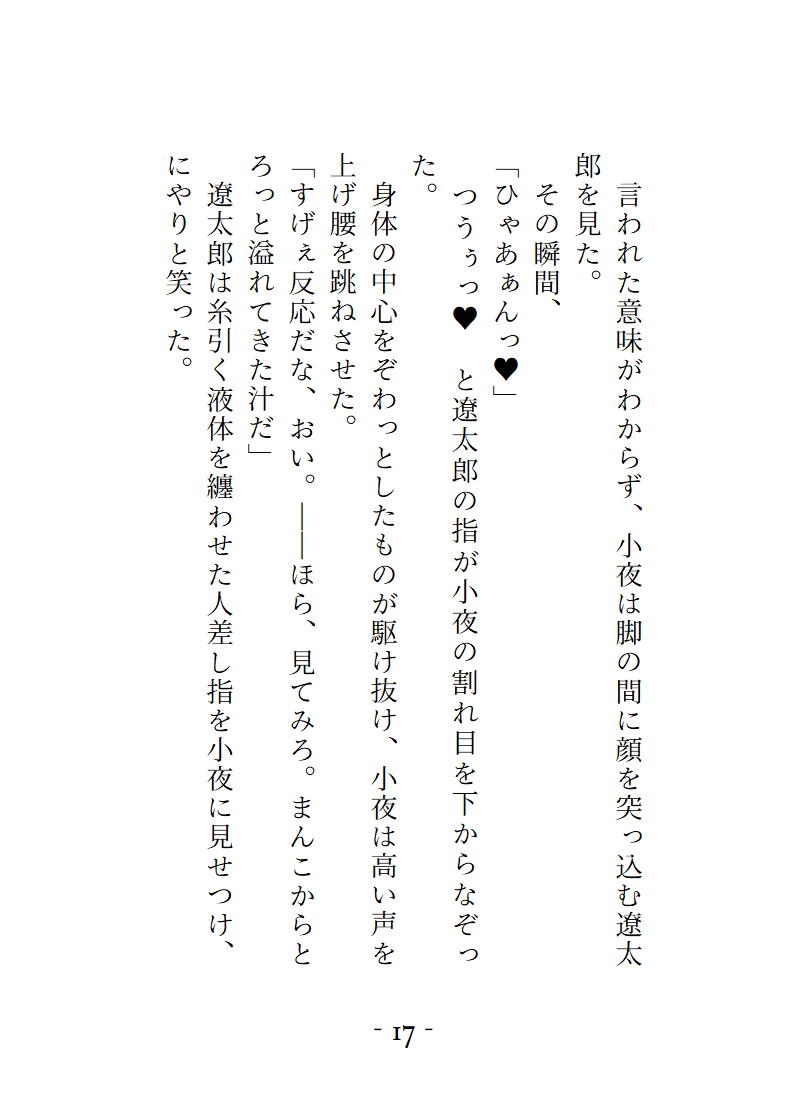 クンニや言葉攻めで小夜を精神的に追い詰め、彼女が屈服する様を特等席で眺める。