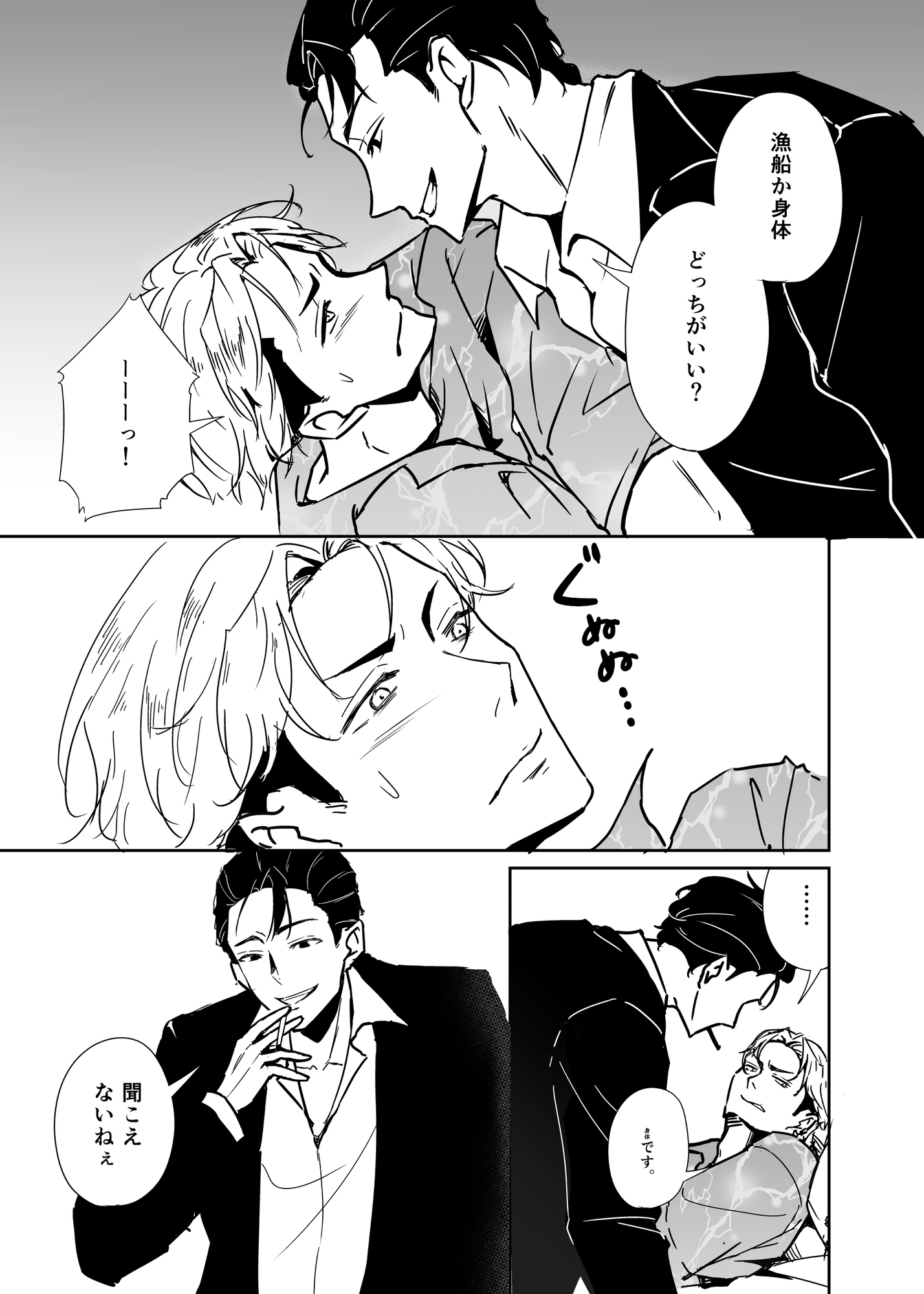 クズ×クズ! ギャンブルで多額の借金を背負った男の前に現れた男。「漁船か、それとも身体か」逃げ場を失い、屈辱的な選択を迫られる。支配と屈服の中で、でも身体は正直で――――借金で繋がる関係の物語。