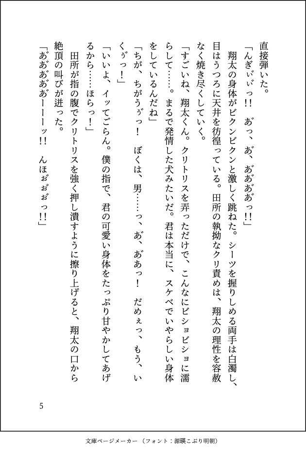 激甘な言葉責め × 極限のクリ責め 田所による「痛くないよ」「偉いね」といった蕩けるような激甘ボイスでの愛撫と、頑村の操る狂気のクリトリス吸引器による限界突破の快感。相反する二つの刺激が、翔太の男としてのプライドをドロドロに溶かしていきます。