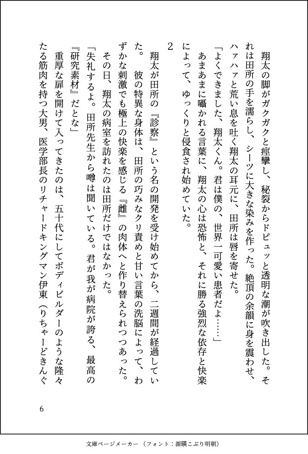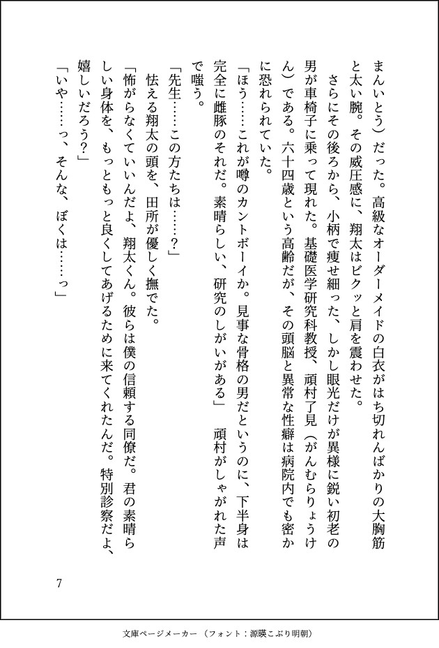 ■ リチャードキングマン伊東(いとう) 51歳 / 医学部長 ボディビルダーのように隆々とした筋肉と、規格外に肥大した極太の肉棒を持つ大男。 翔太の処女を無慈悲に奪い、特大浣腸や未開の後孔(アナル)の開拓など、暴力的な肉体蹂躙を担当する。翔太が排泄物や精液にまみれてイキ狂う姿を見るのを何よりの愉悦としている。