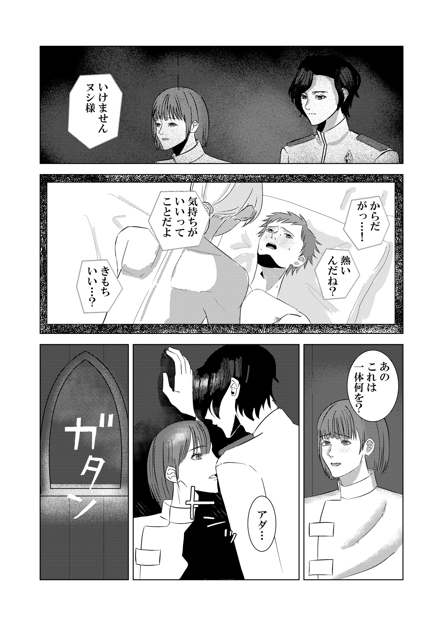 異星人の血を受け継ぐ「神」のミコトは自らの出自を恥じていた。そんなある日、ミコトの片腕であるアダルベルトが夜の匂いを纏っていたことをからかってやろうとベッドに引きずり込む。そこから二人の関係は変化していく。