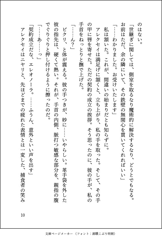 初夜に待っていたのは、大量の浣腸液による洗浄と、アナルへの徹底的な開発。 「発明家の才能」を見抜かれたエレオノーラは、天才的な頭脳と引き換えに、下半身の主導権を完全に握られてしまう。 オリハルコン製の遠隔ローター、晩餐会での寸止め、そしてパレードでの公開放尿……。 歪んだ性癖に塗れた溺愛の果てに、二人が掴む幸せ(と快楽)とは――?