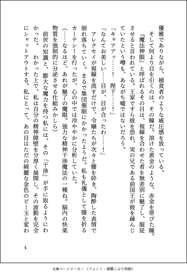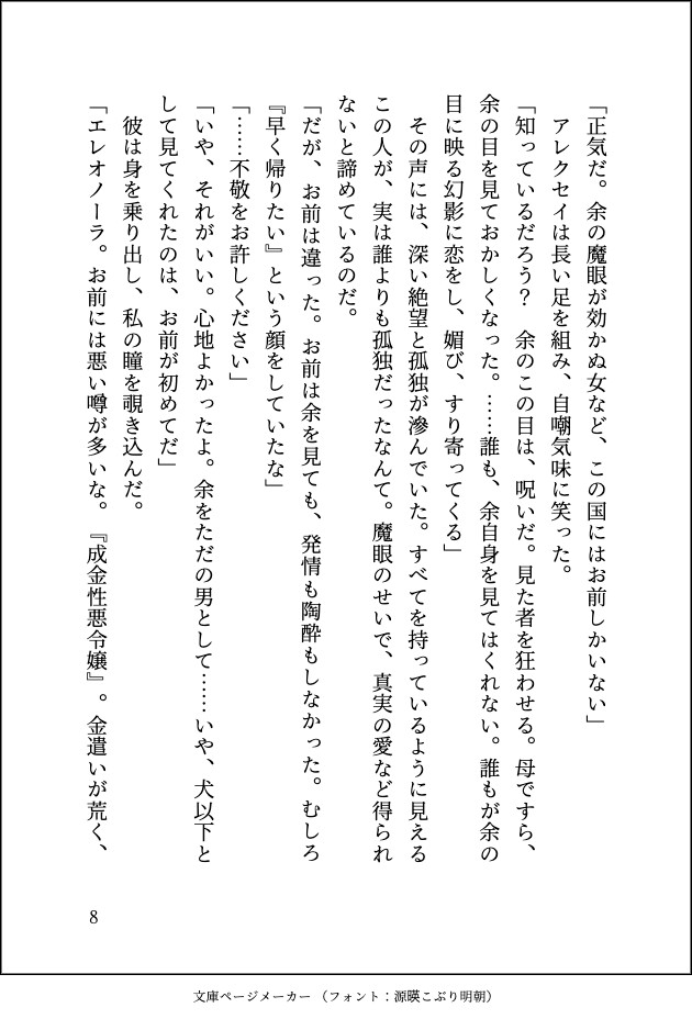 ● アレクセイ・ド・グロス⚪︎ビロフニア(皇帝) 絶世の美貌と、人を魅了する『魔法神眼』を持つ皇帝。その力のせいで誰からも直視されず、孤独を抱えて生きてきた。 魔眼が効かず、自分を「ただの男」として見てくれるエレオノーラに執着し、歪んだ愛情(性癖)を注ぐ。