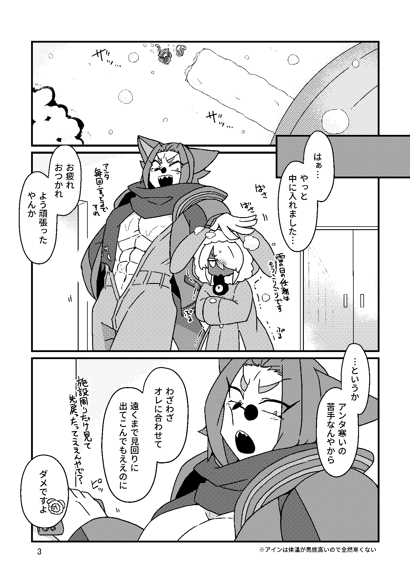 ハチャメチャ甘々逆体格差!小さくて可愛い攻め×デカくてムキムチな受け、同い年の人外カップルがお届けする元気なラブラブえっち。挿入方向絶対固定、それ以外の要素は日替わり定食です。
