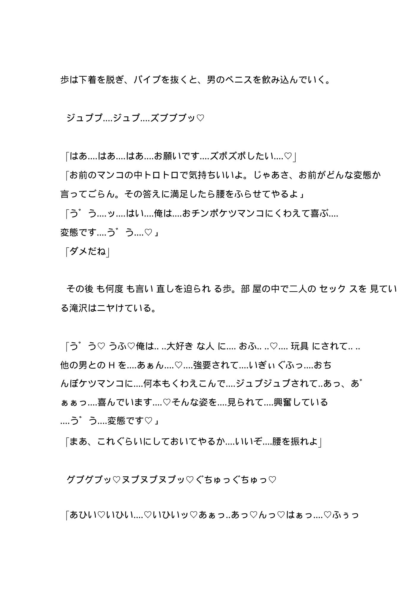 18禁小説です。 ノンケのクズS後輩 × ゲイの先輩。 会社のノンケ後輩を好きになったゲイ(バリタチ)が、恋愛感情を利用されて色々させられていく展開です。 飲精、イラマチオ、ビンタ、他の同僚に晒し、ピストンマシーン、モブ〇、売り、言葉責め、犬プレイ等