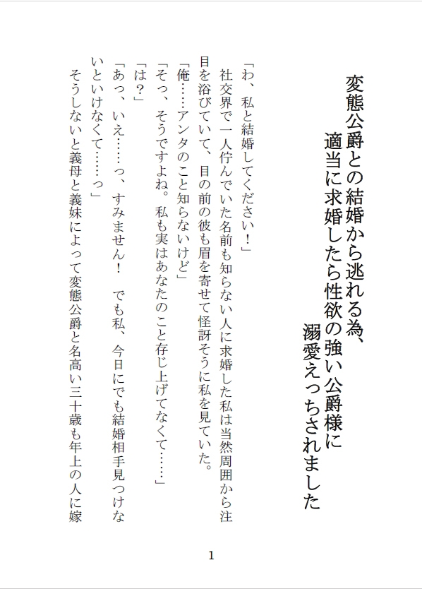 「変態公爵との結婚から逃れる為、適当に求婚したら性欲の強い公爵様に溺愛えっちされました」のFANZA価格データはありません