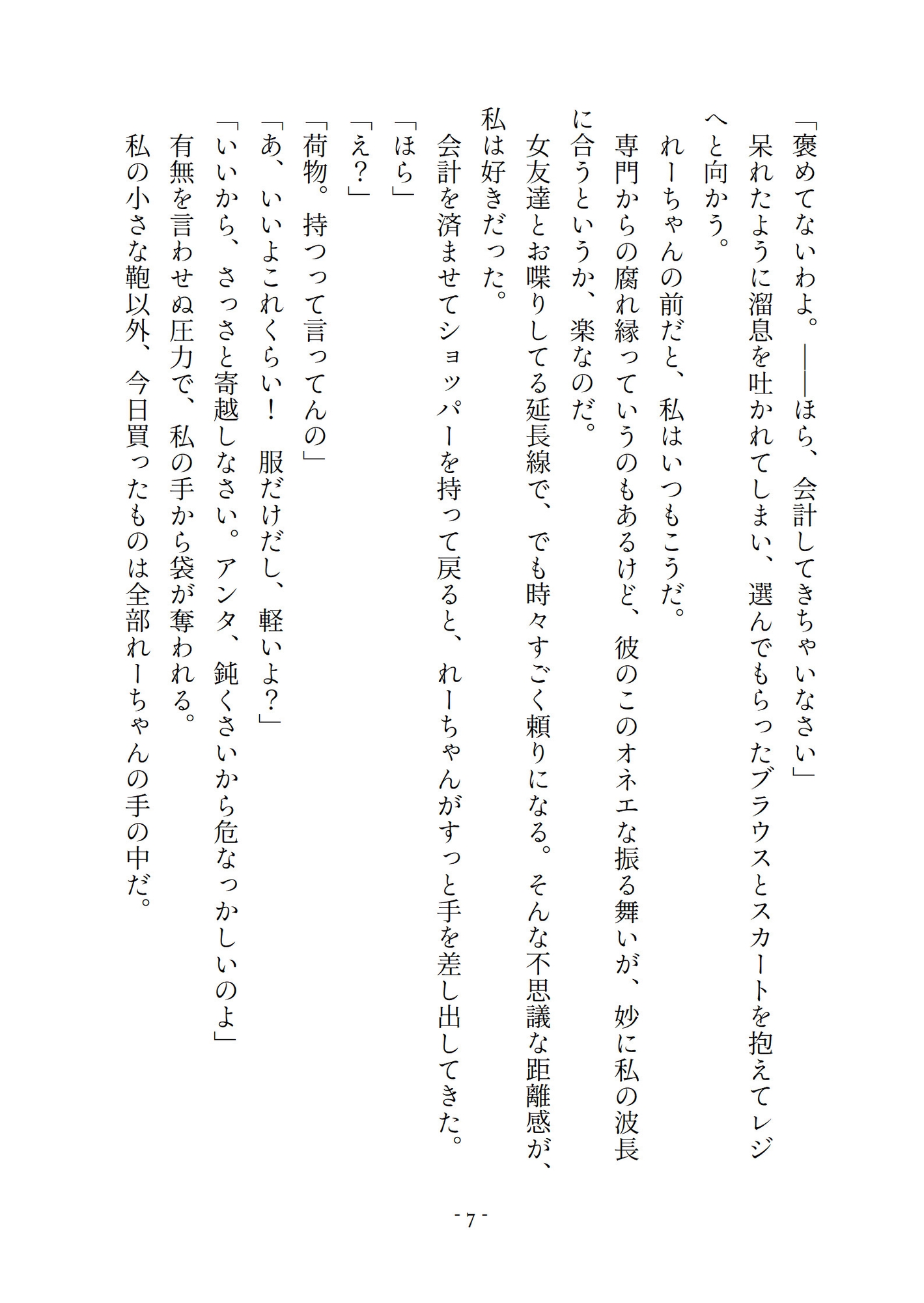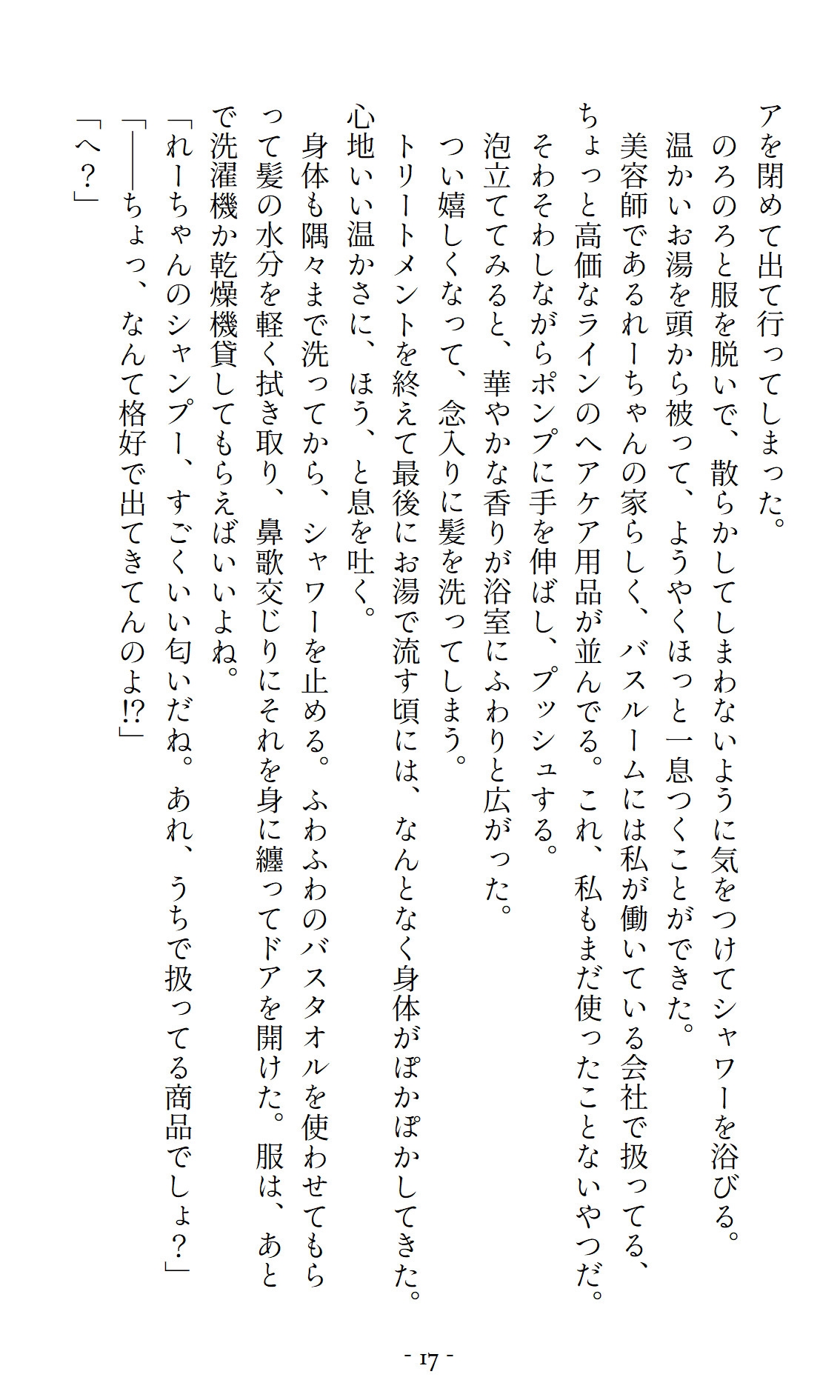実は恋愛対象は女性(ストレート)で、主人公にずっと片想い中。彼女の鈍感さに呆れつつも、男としての欲望を隠してそばにいたが……?専門時代からの付き合いである美容師の「れーちゃん」は、私にとって一番気の合う女友達(男)。
