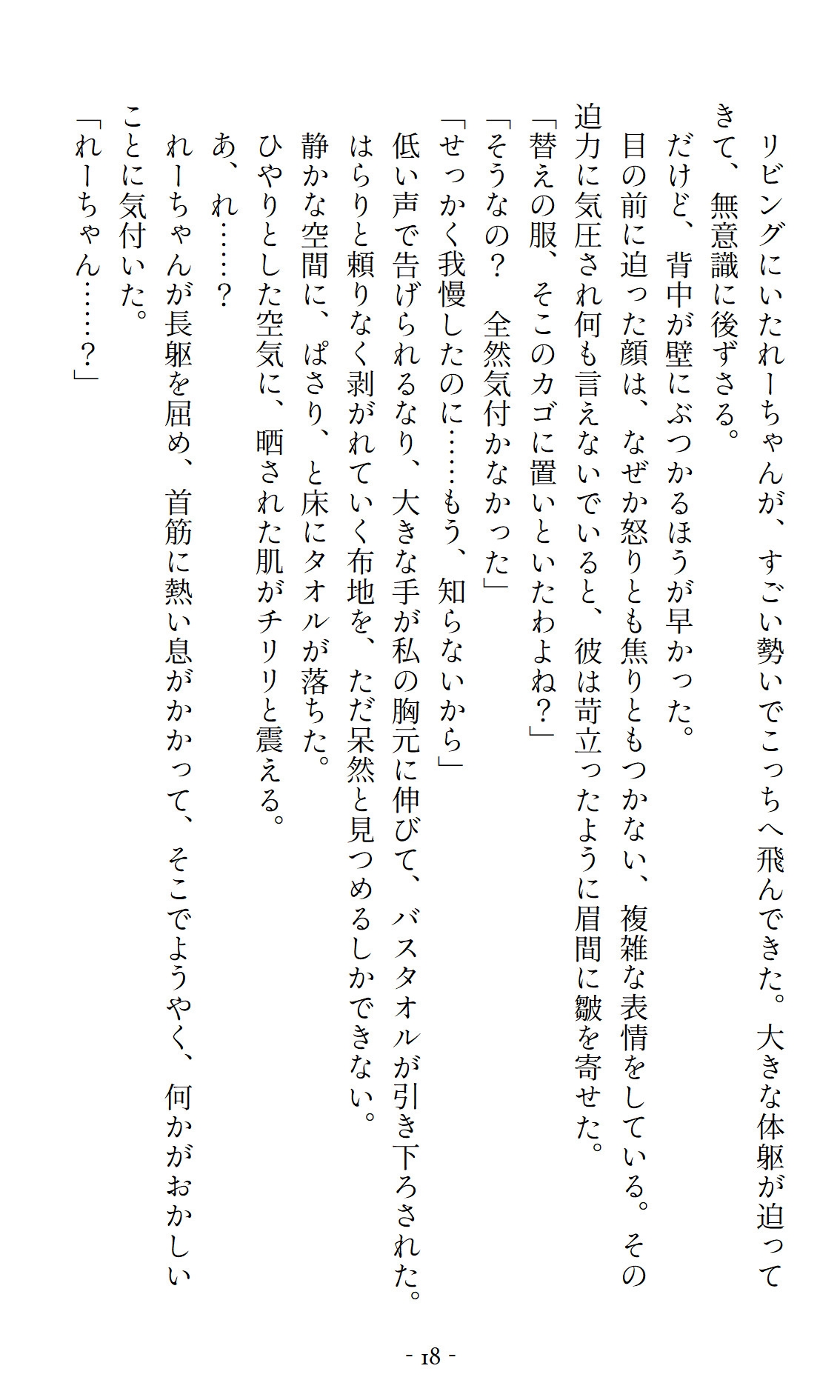 寒さで震える身体を温めようと、旅行感覚でそう提案した瞬間――れーちゃんの雰囲気が一変する。
