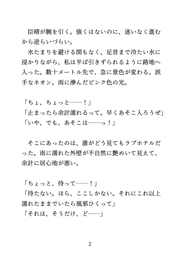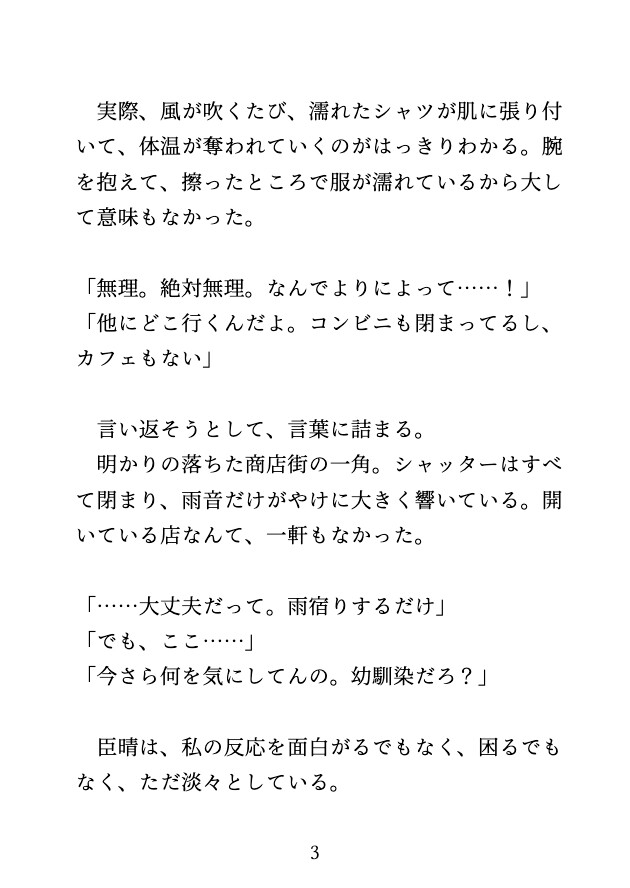 「雨宿りするだけ」と平然としている臣晴とは対照的に、あなたは戸惑いを隠せない。
