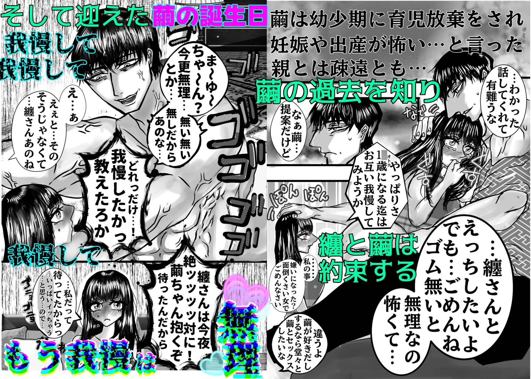 過去に育児放棄を受けた経験から妊娠する事が怖く纏にもゴムをして貰うが纏が愛をわからせる為にゴムなし孕ませセックスをする。