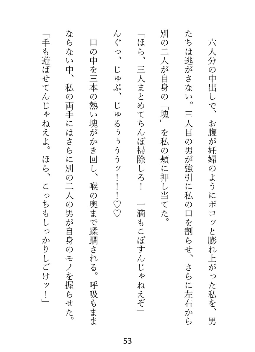 白濁でパンパンに膨れ上がったお腹をさらけ出し、廃人のような笑みで「共有物」として腰を振る、逃げ場のない複数プレイの記録。