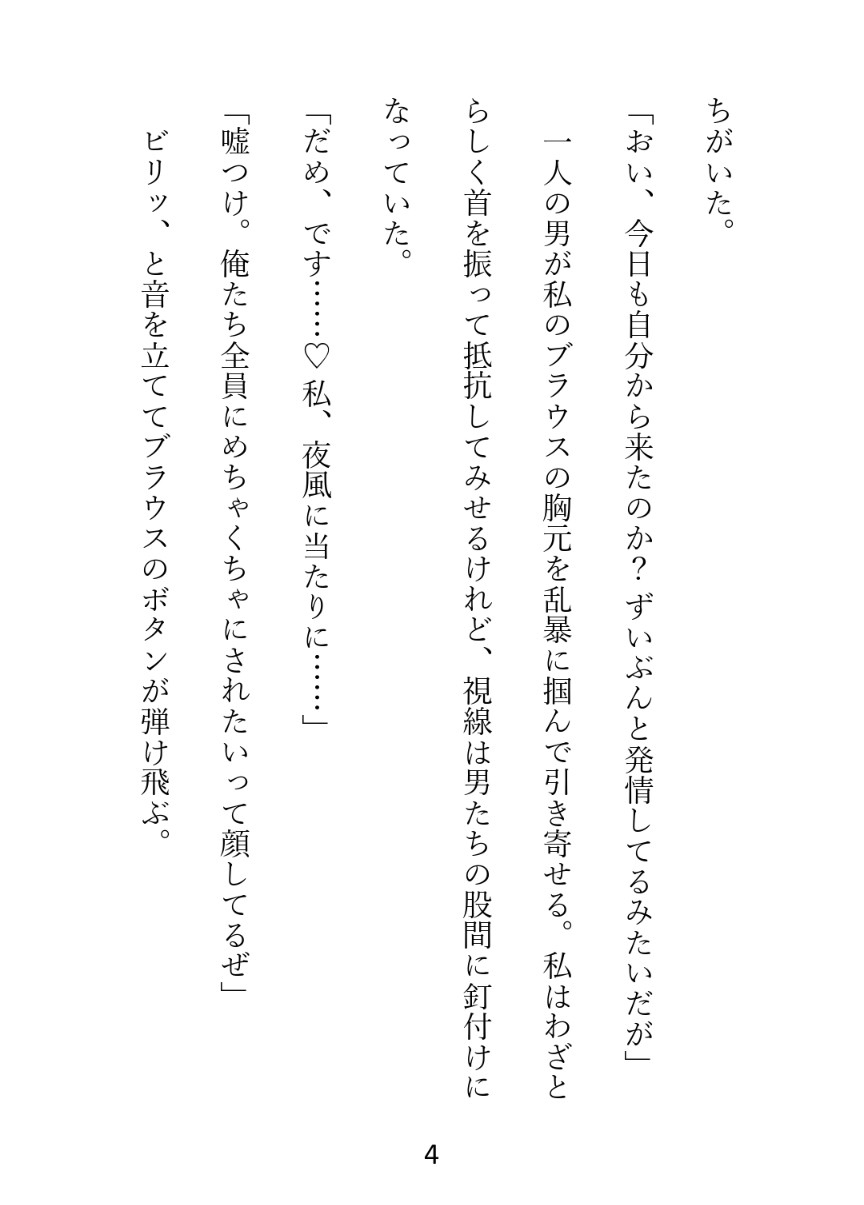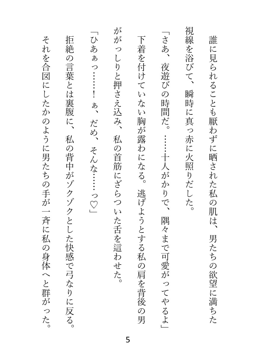 深夜、下着を履かずに廊下を徘徊する彼女を待っていたのは、暗闇から伸びる十人の獣たちの腕だった。