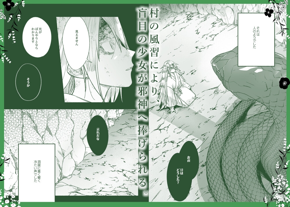 村の風習により、盲目の少女が邪神へ捧げられる。奇妙な共生のなかで二人の関係は変化していく。 ※人によりバットエンドともグッドエンドとも受け取れます。 ※性描写は控えめです。