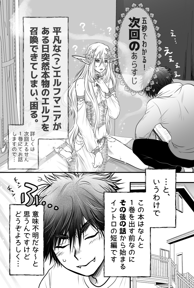 美人エルフ受けの異世界召喚エロコメ創作BL、シリーズ第1作め。 正式な1話の前にイントロダクションの短編、これだけで読める内容です(次回1話目と内容は重複しません)。★表紙フルカラー・モノクロ漫画・全24P(表紙込み)【攻】エルフマニアの天才大学生男子(年下攻・エルフでしか抜けない(エル専)・性欲と根性でエルフ語を会得した天才)×【受】中性的美人エルフ医師(ベテラン性医・ほぼサキュバス・スレンダー長髪メスお兄さん・年上受け)