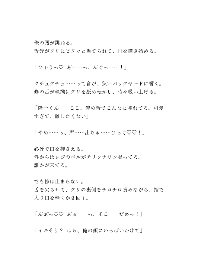 しかし、眼鏡の地味イケメン常連・修にシフトを監視され、バックヤードで倒れた瞬間――