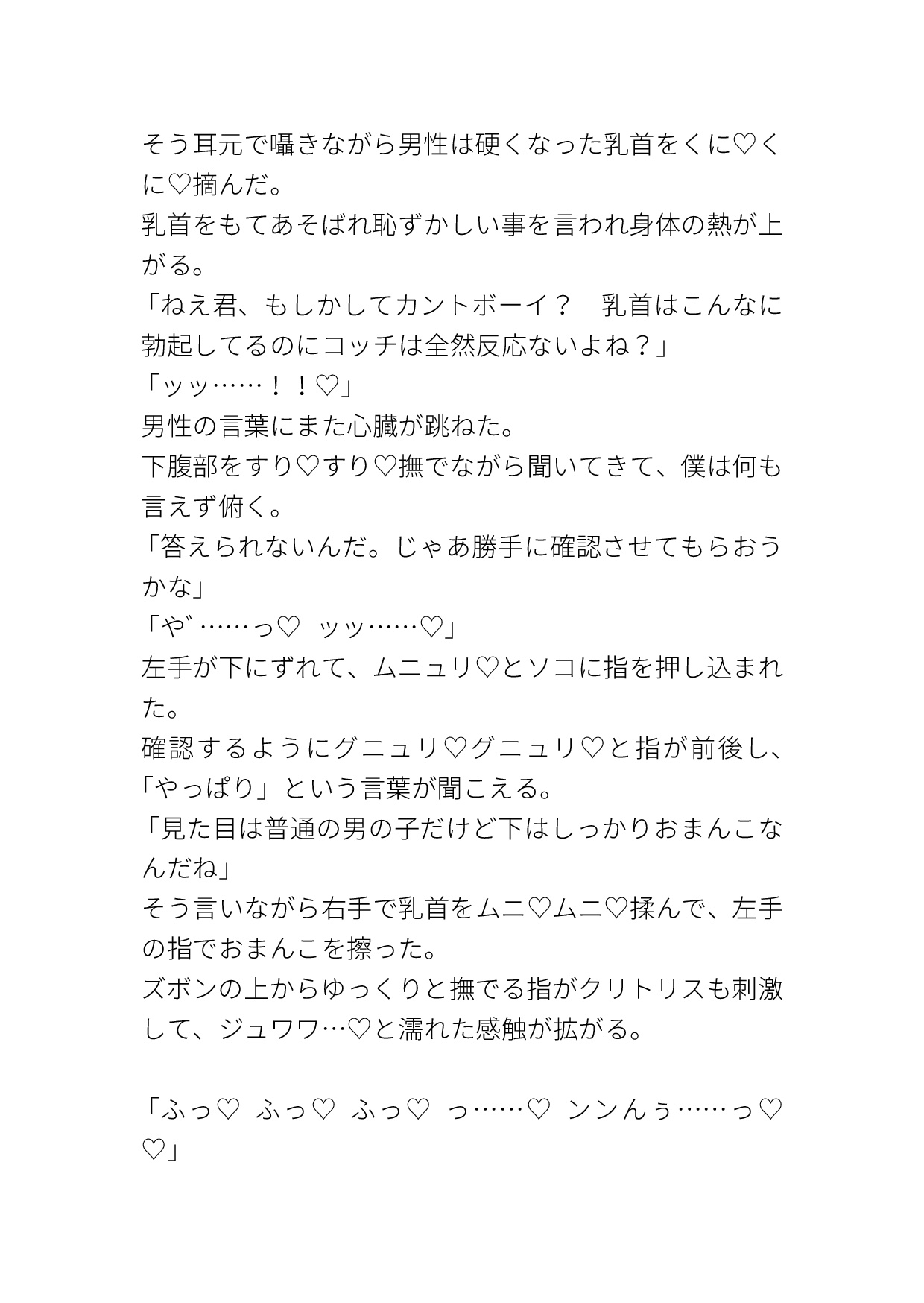 カントボーイ/痴○/クリ責め/乳首責め/中出し/素股/♡喘ぎ/濁点喘ぎ/擬音表現