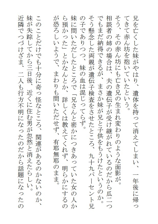 「遺体を持ちだして失踪した女が、赤ん坊をつれてもどってくる」という謎現象を調べていた探偵が座敷牢に閉じこめられ銀髪の男に・・エログロホラーBL小説