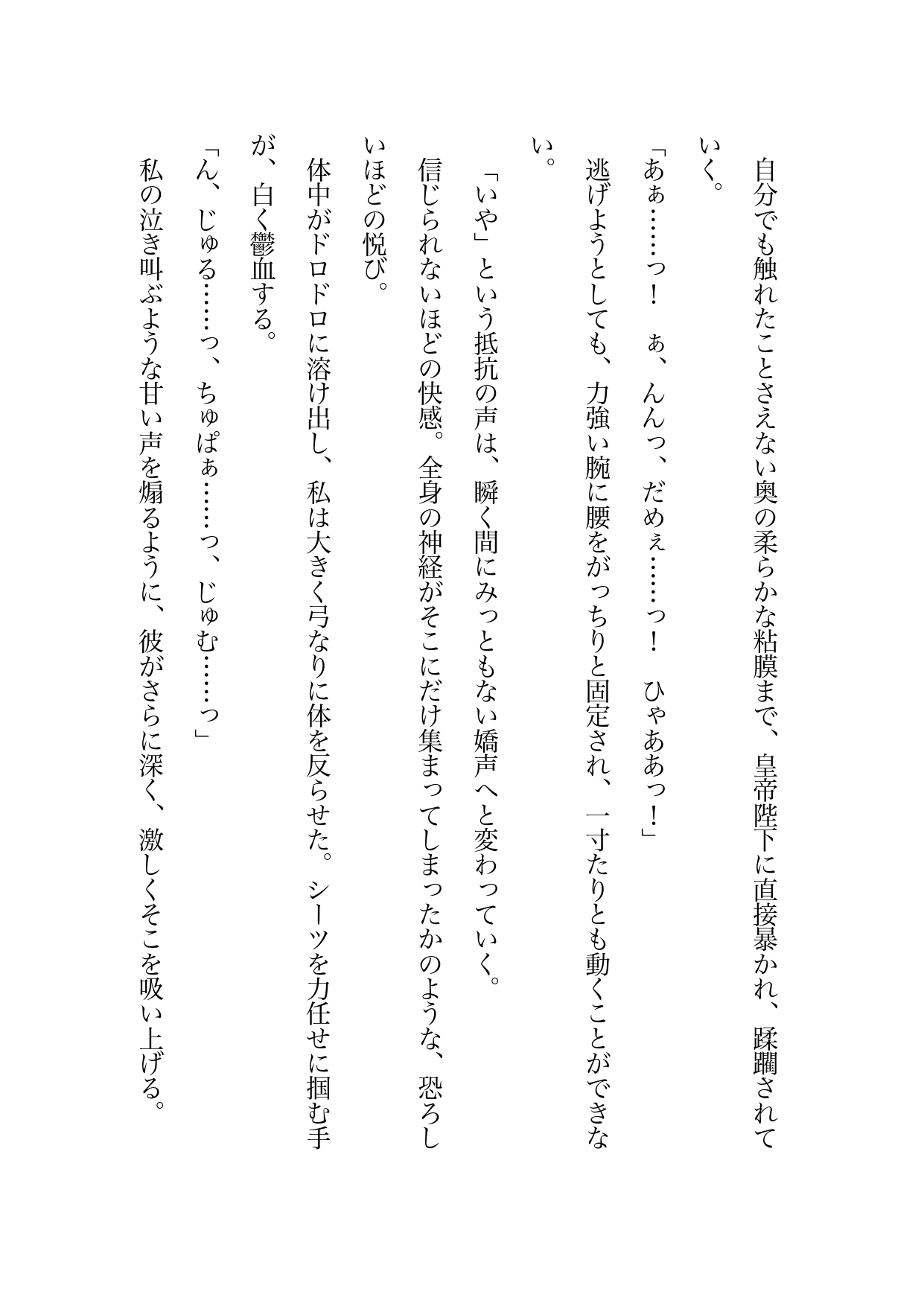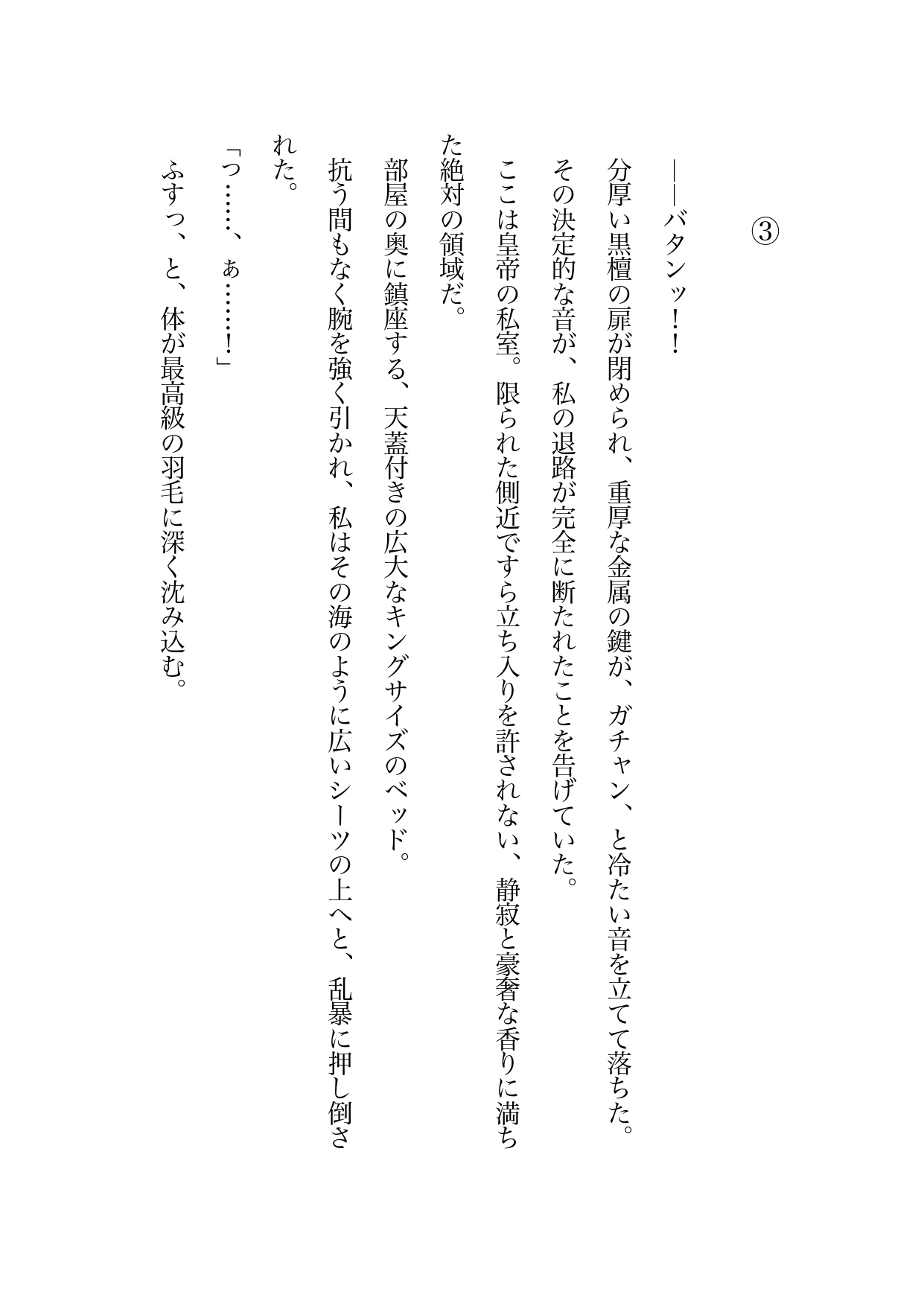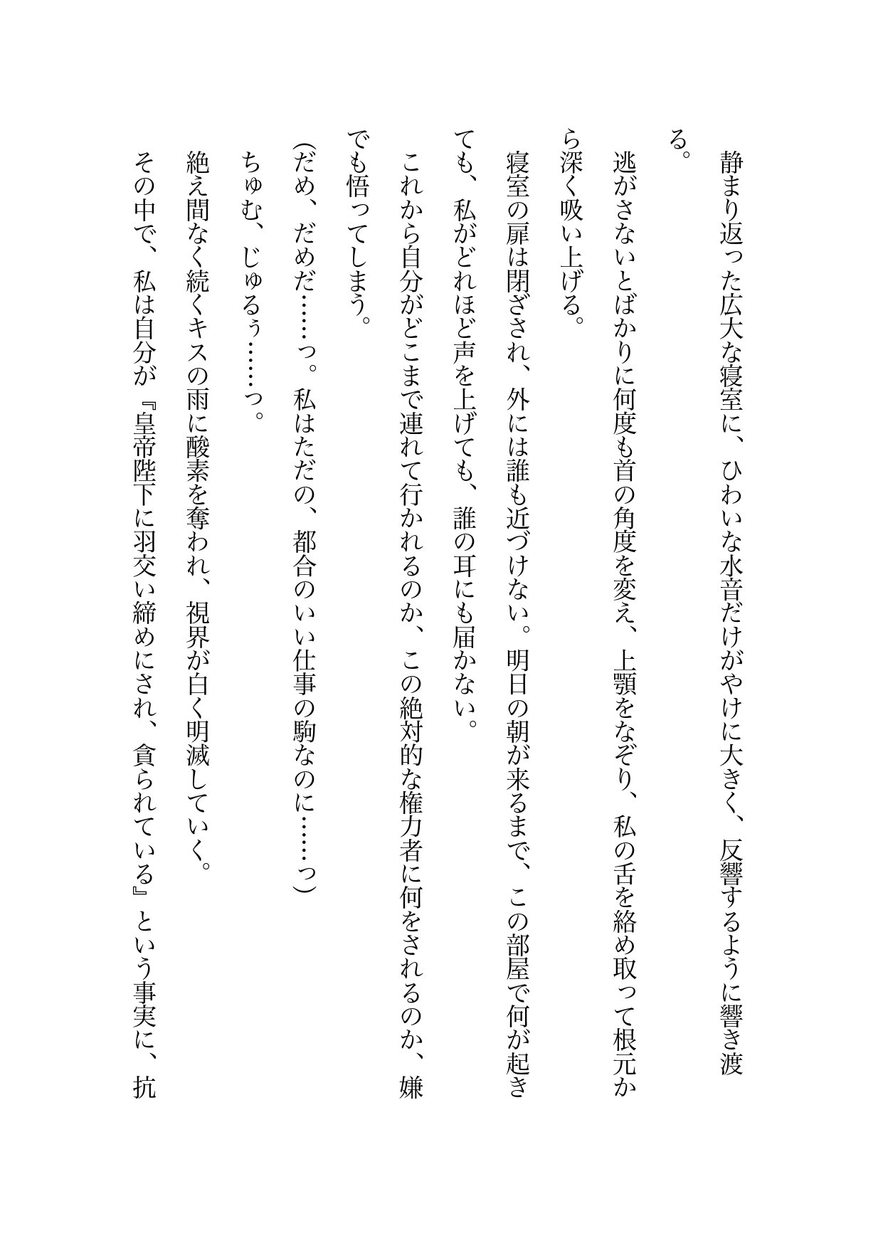 けれどある日の夜、突然すべての役人を遠ざけた陛下によって、私は光の届かない絶対の密室――『皇帝の寝室』へと閉じ込められてしまう。