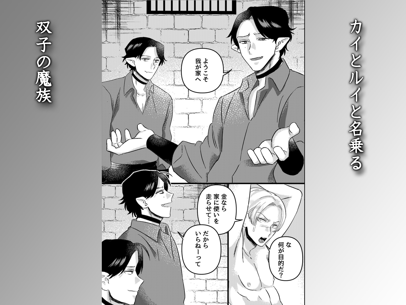 エリオスは人間界で誇り高く暮らす貴族だったが、ある日馬車が襲撃され、魔族の双子カイとルイに拉致されてしまう。
