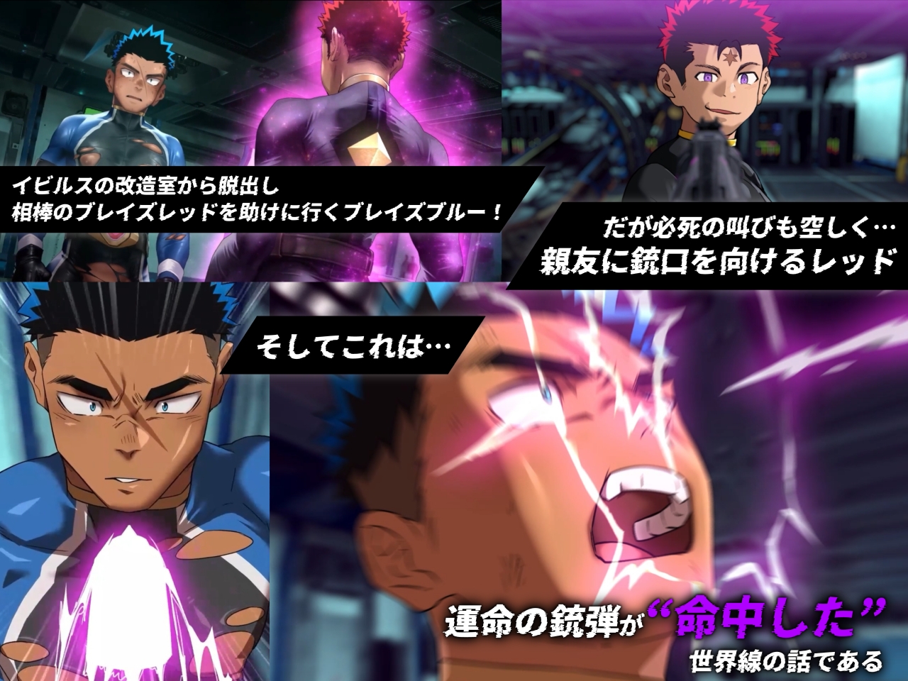 レッドの放った銃弾がブルーに命中したEVIL SIDEでは、親友の手によって堕とされる…!