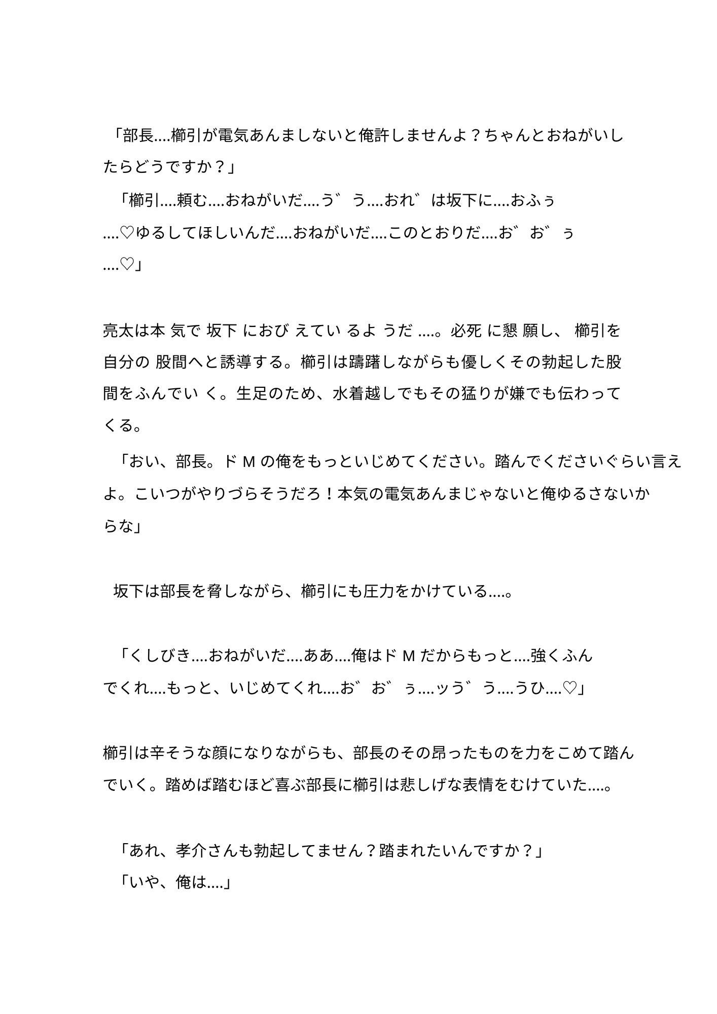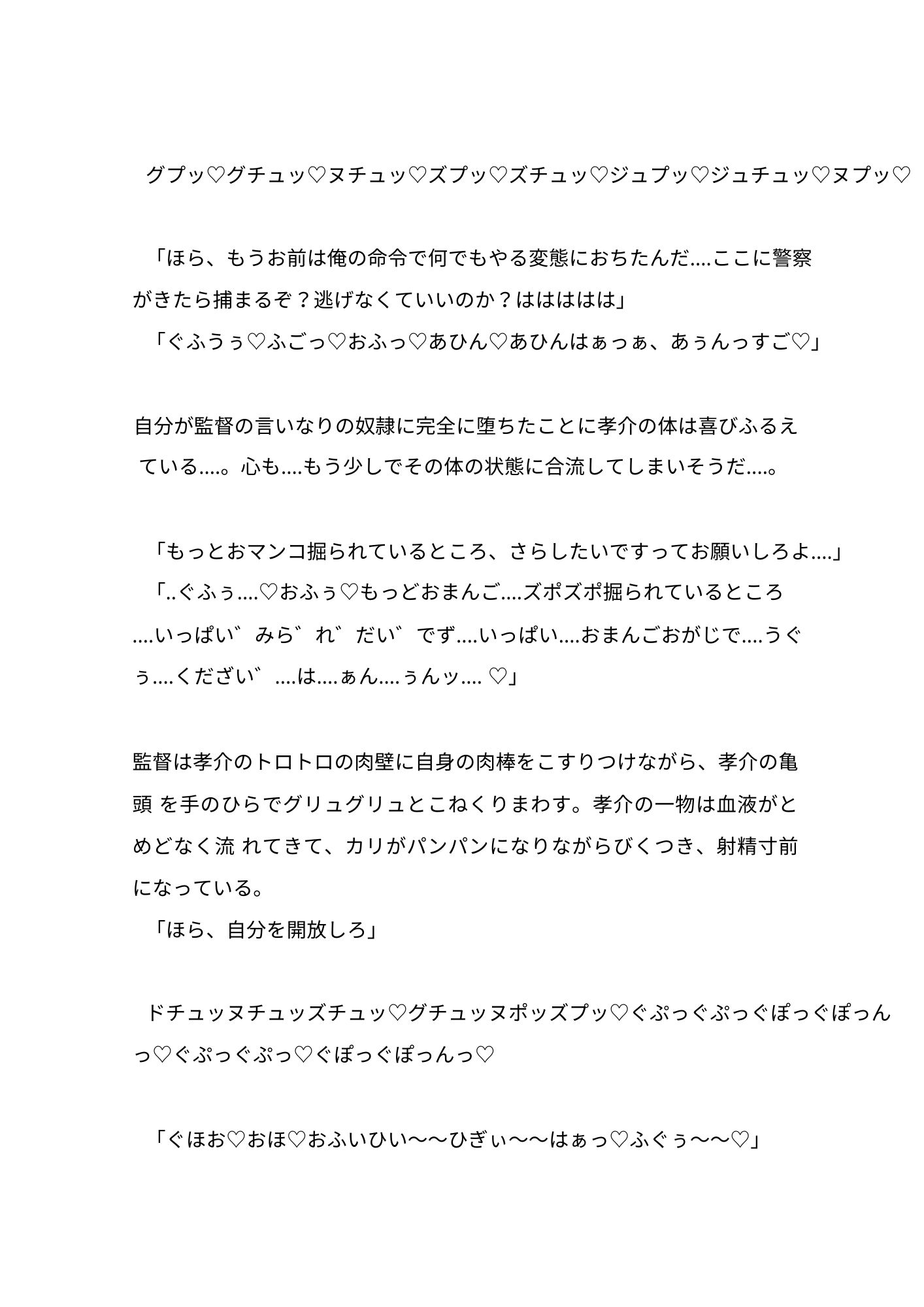 1~2巻で、監督と後輩の坂下に調教され、部長の亮太が奴○になっていたことを知った孝介が、さらにおとされていきます‥‥。