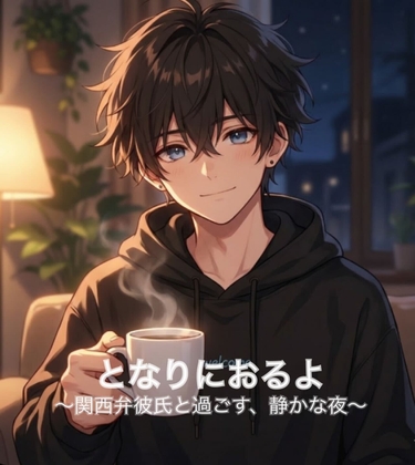 仕事や外での付き合いに疲れて帰ってきたあなたを、関西弁の彼がいつも通りに迎えてくれます。あたたかいものを一緒に食べて、取り留めのない話を少しだけ。頑張れなかった日も、「帰ってきただけで合格やで」と受け止めてくれる距離感が、凍えた心をじわりとほどいていきます。静かな夜に寄り添い、安心して眠りに向かうための、日常寄りの癒やしシチュエーションボイスです。
