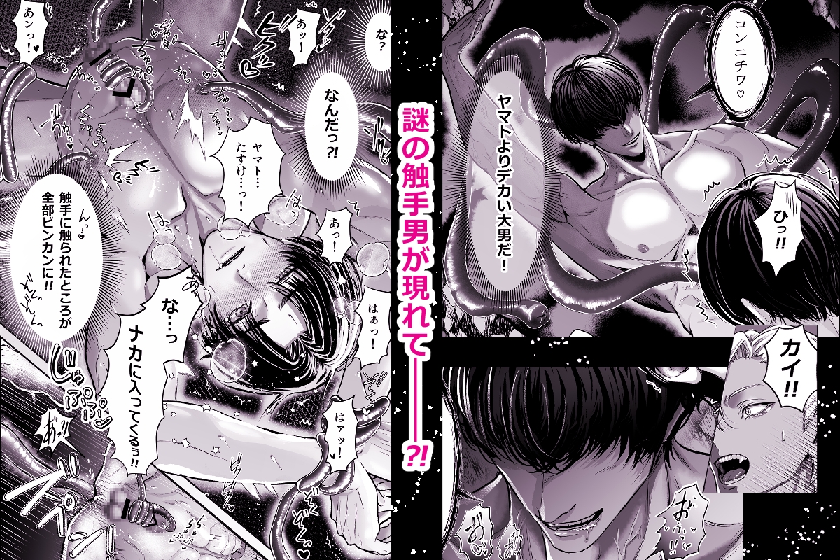 【触手&3P】飛行機事故で無人島に流れついた2人の男。 そこは謎の触手生物がはびこる危険な島だった…?!