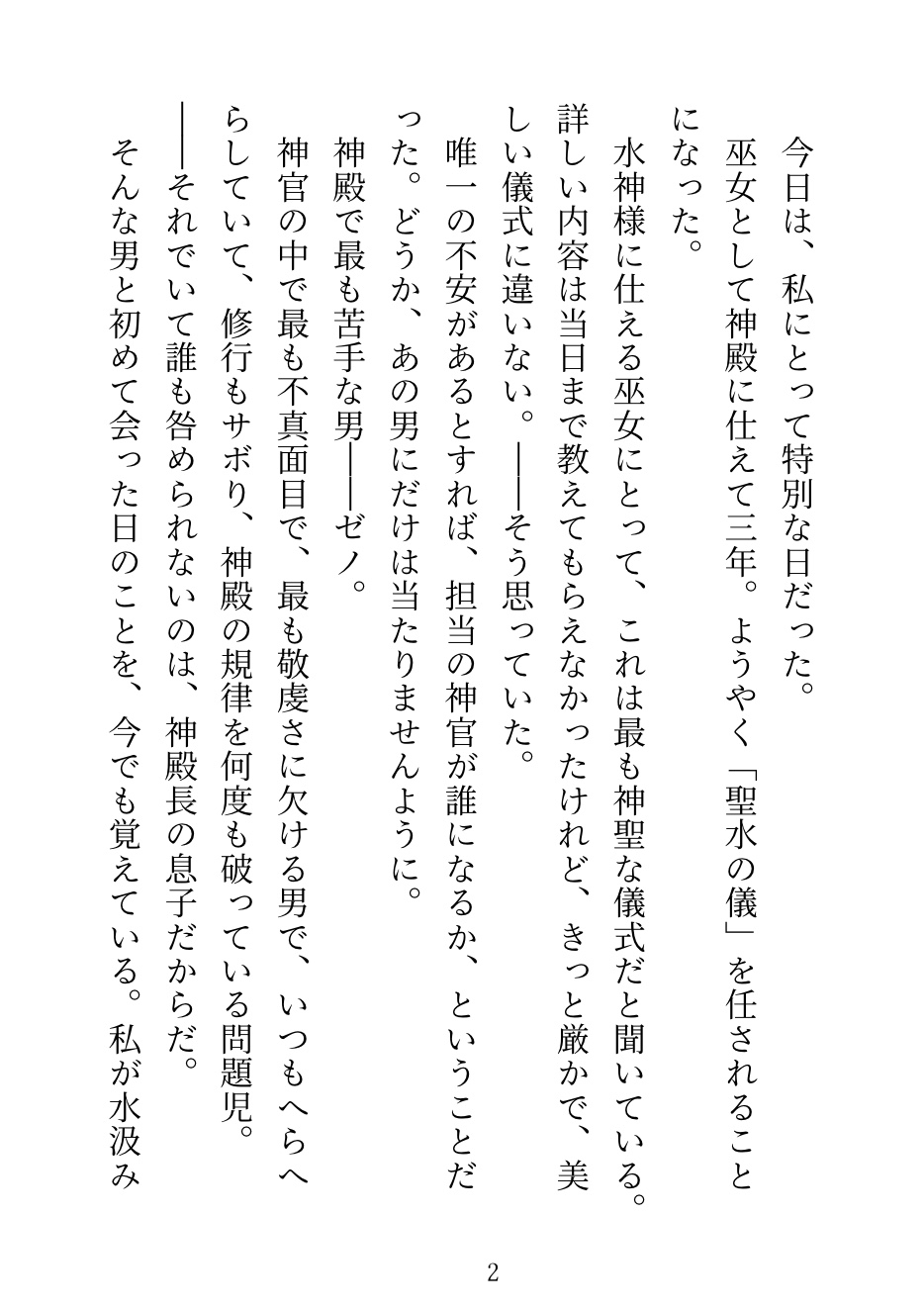 巫女として三年。ようやく「聖水の儀」を任されることになった。