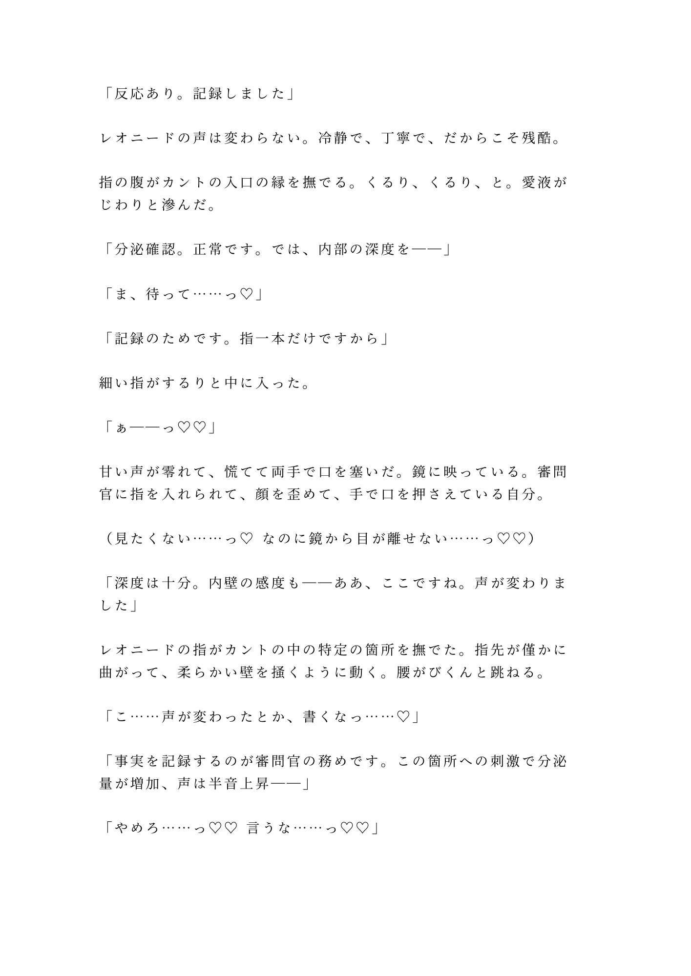 さらに厄介なのが、もうひとりの男。異端審問局筆頭審問官レオニード・クラウス。蜂蜜色の巻き毛に金茶の瞳、穏やかな笑みの裏に底知れない執着を隠した美貌の知性派。「適格審査」の名目でセラスの身体を暴き、記録し、微笑みながら理性を剥がしにかかる。