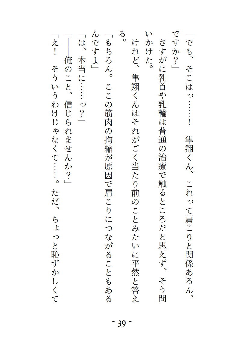 肩こり改善、整体マッサージのはずが、隼翔の指先は肩とは違うところばかりに触れてくる。