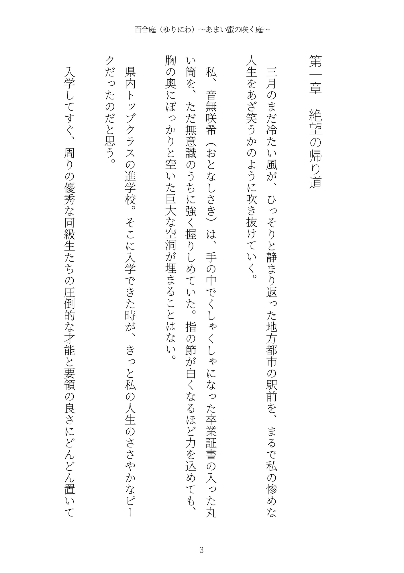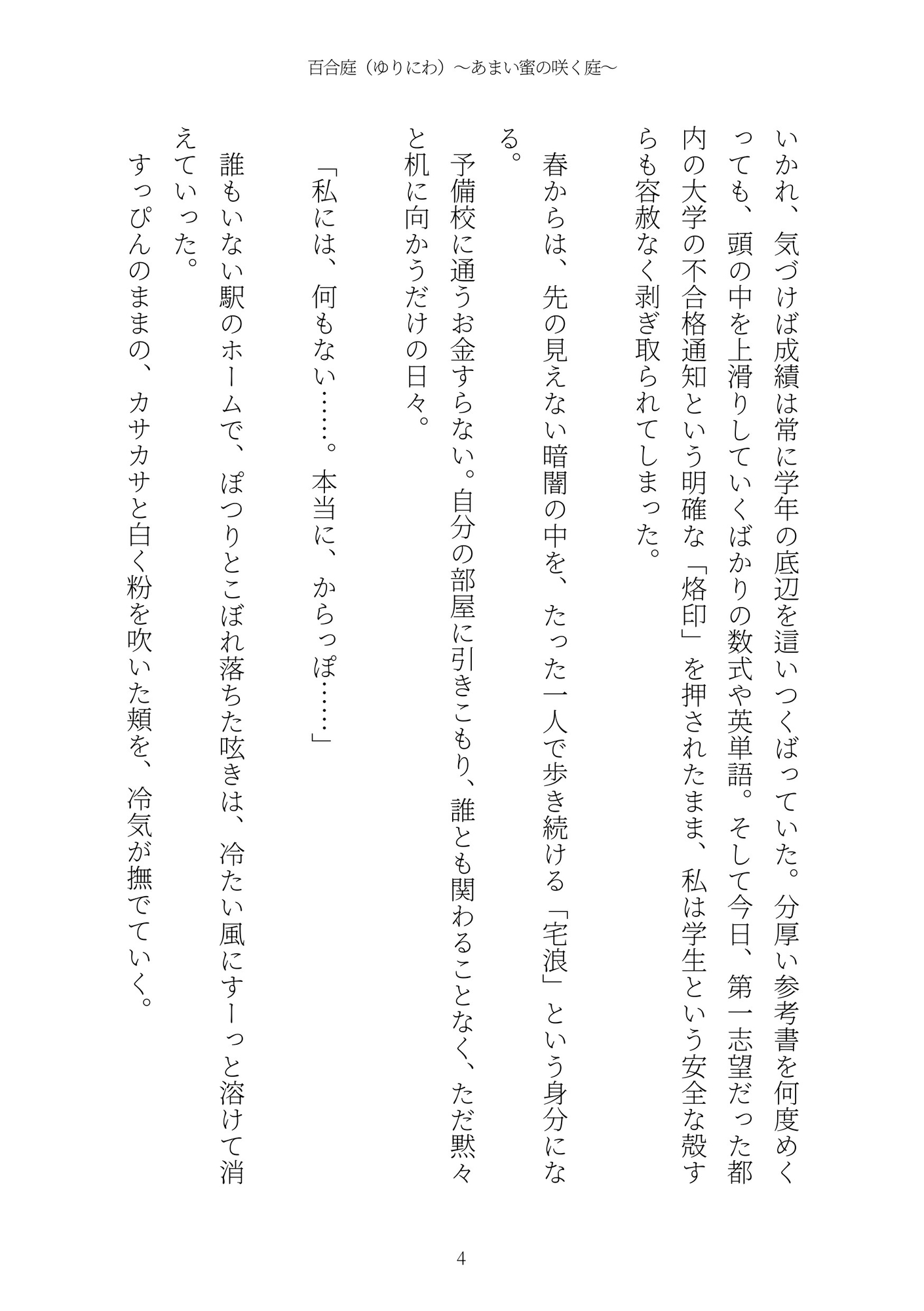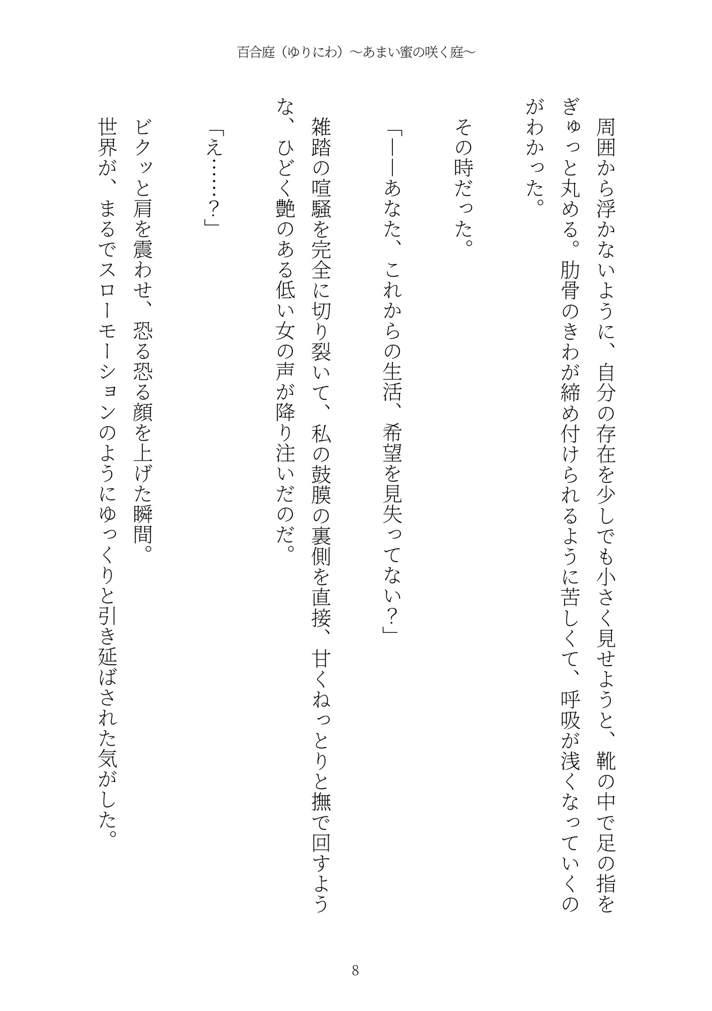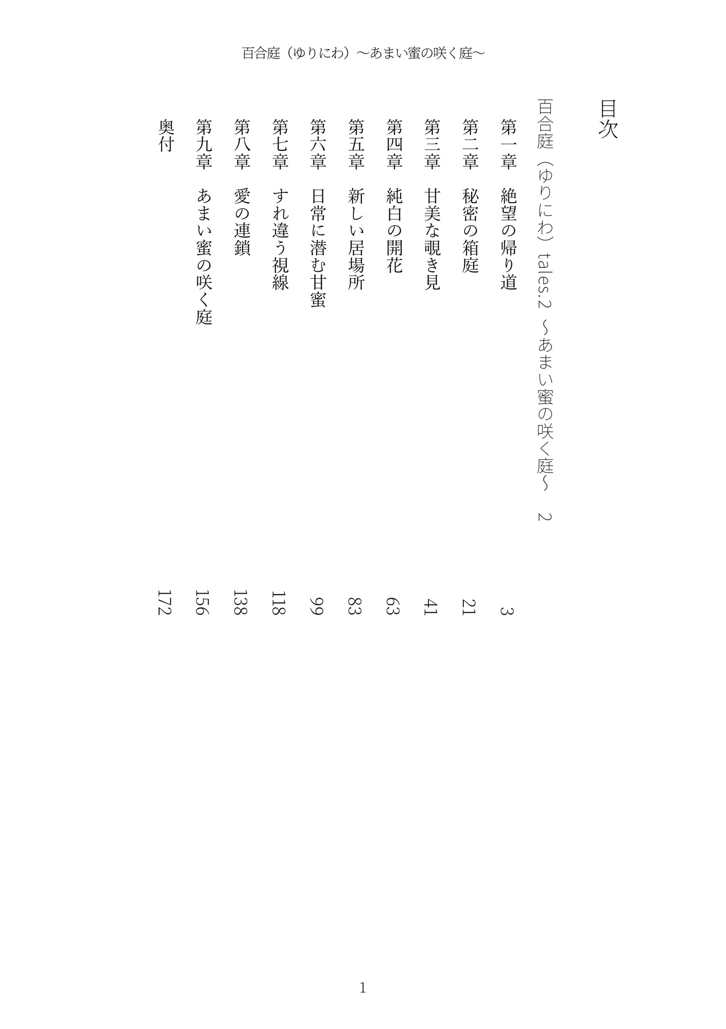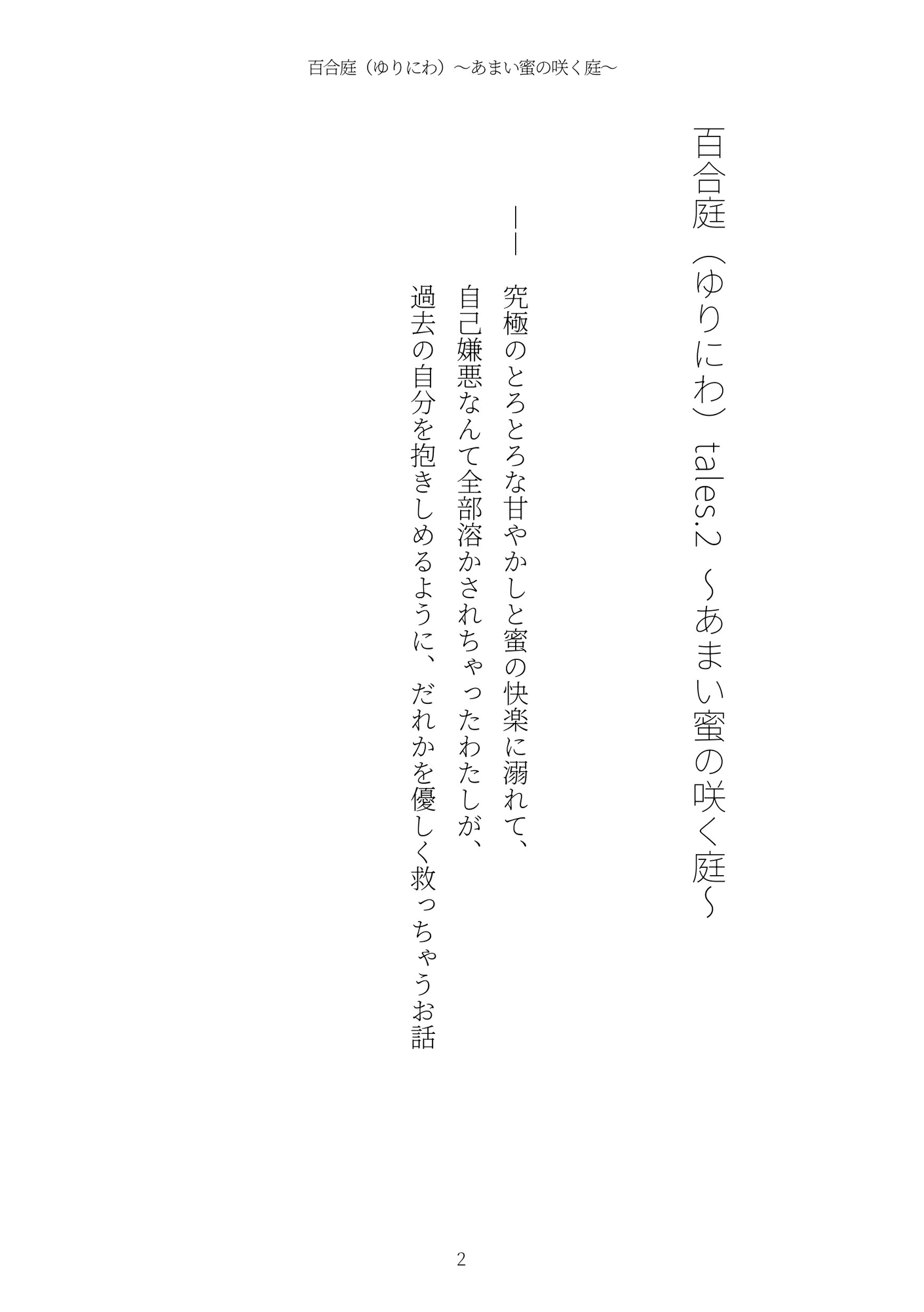 ※本作は「百合庭(ゆりにわ)tales.1 〜純白の蕾〜」の続編です。本作のみでも充分お楽しみいただけますが、前作からあわせて読んでいただけるとうれしいです。