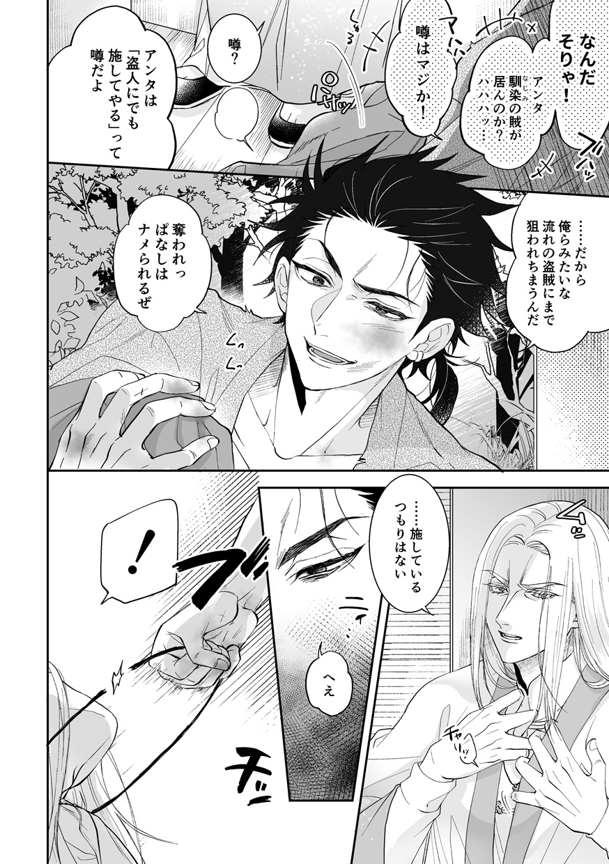 中華風ファンタジー世界観での長編BL漫画、2人の最悪な出会い編。誘い受けからの形勢逆転&強○絶頂!