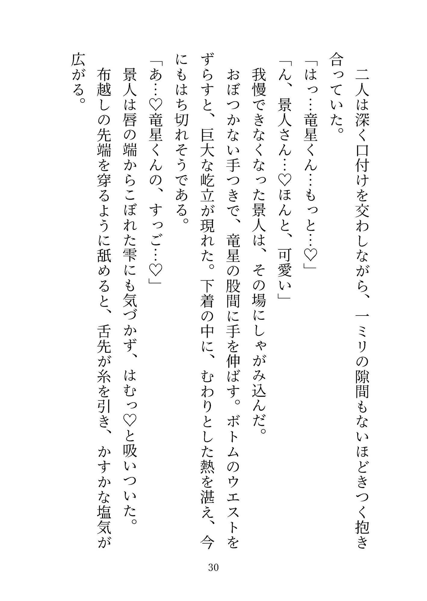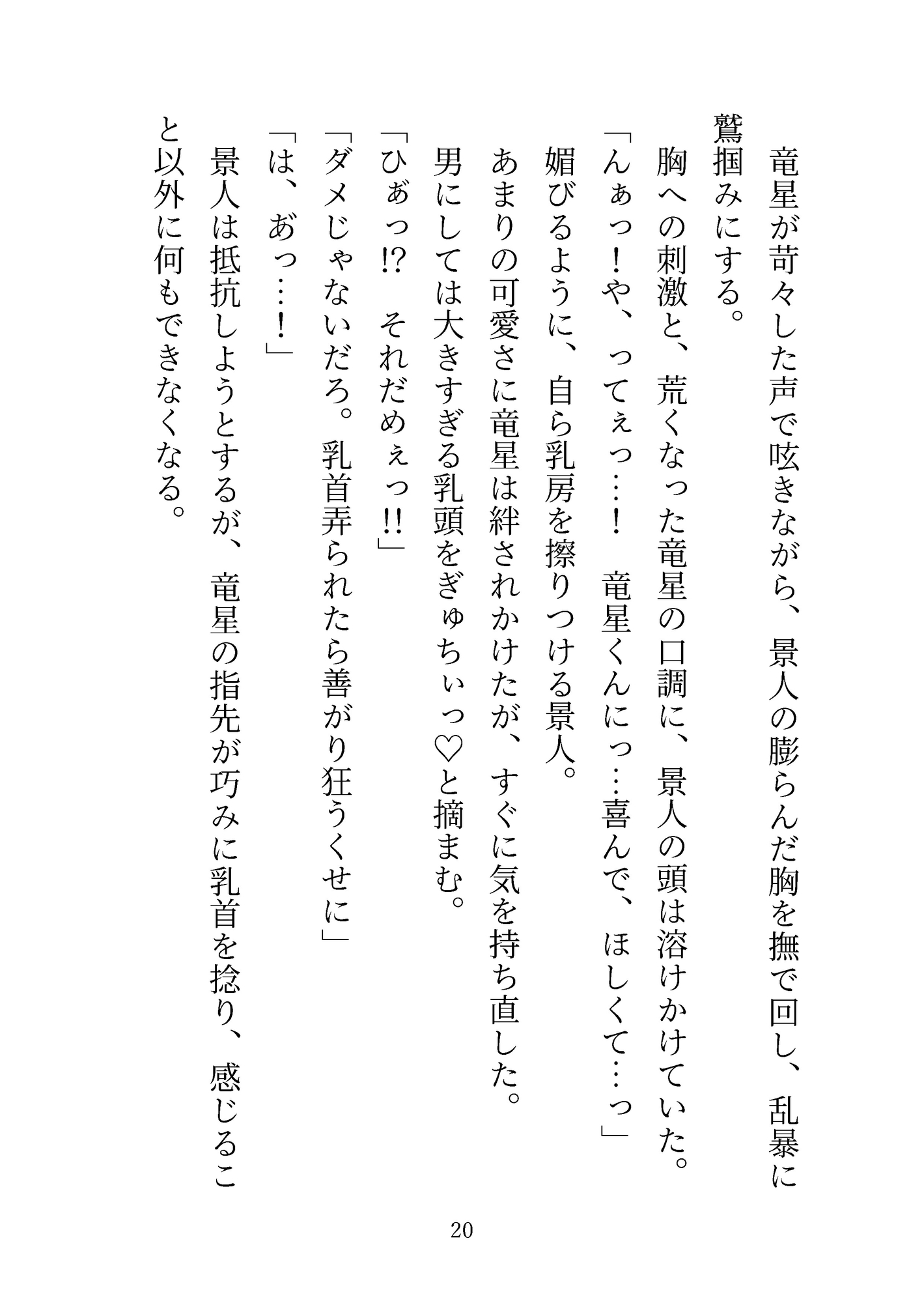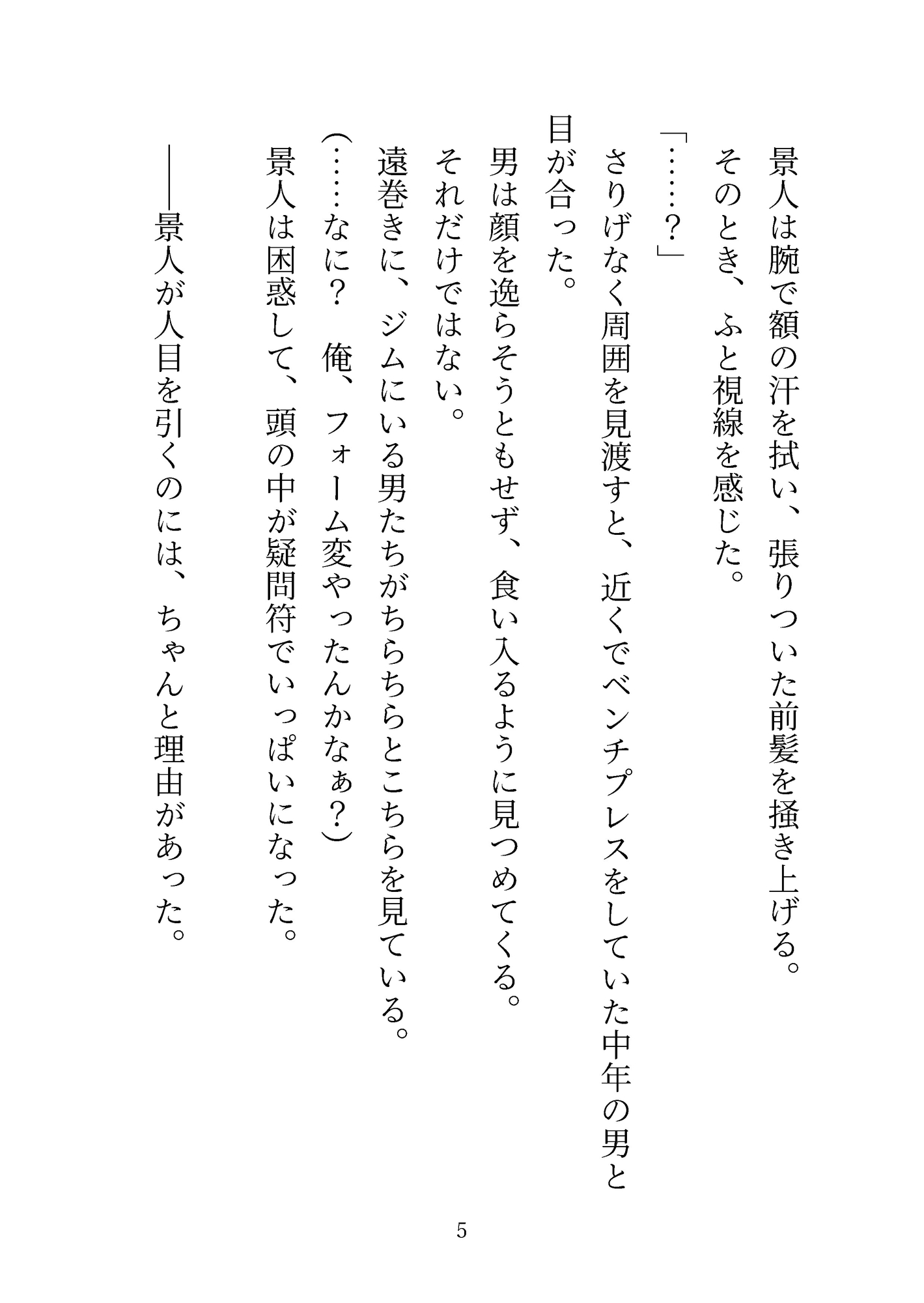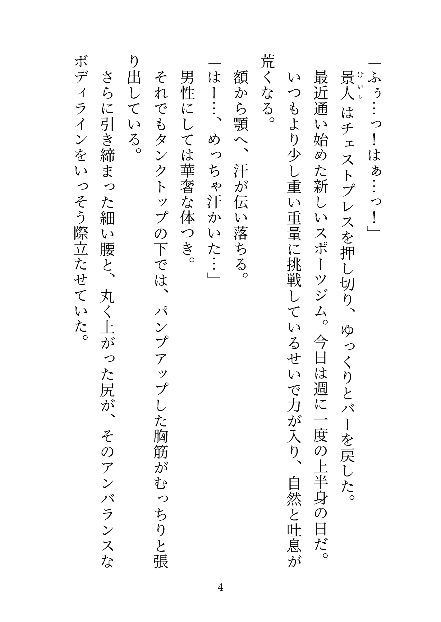 頼れる超絶イケメン年下彼氏・竜星(りゅうせい)とラブラブな景人は、おっぱい好きな竜星のためにスポーツジムで胸トレに励んでいた。