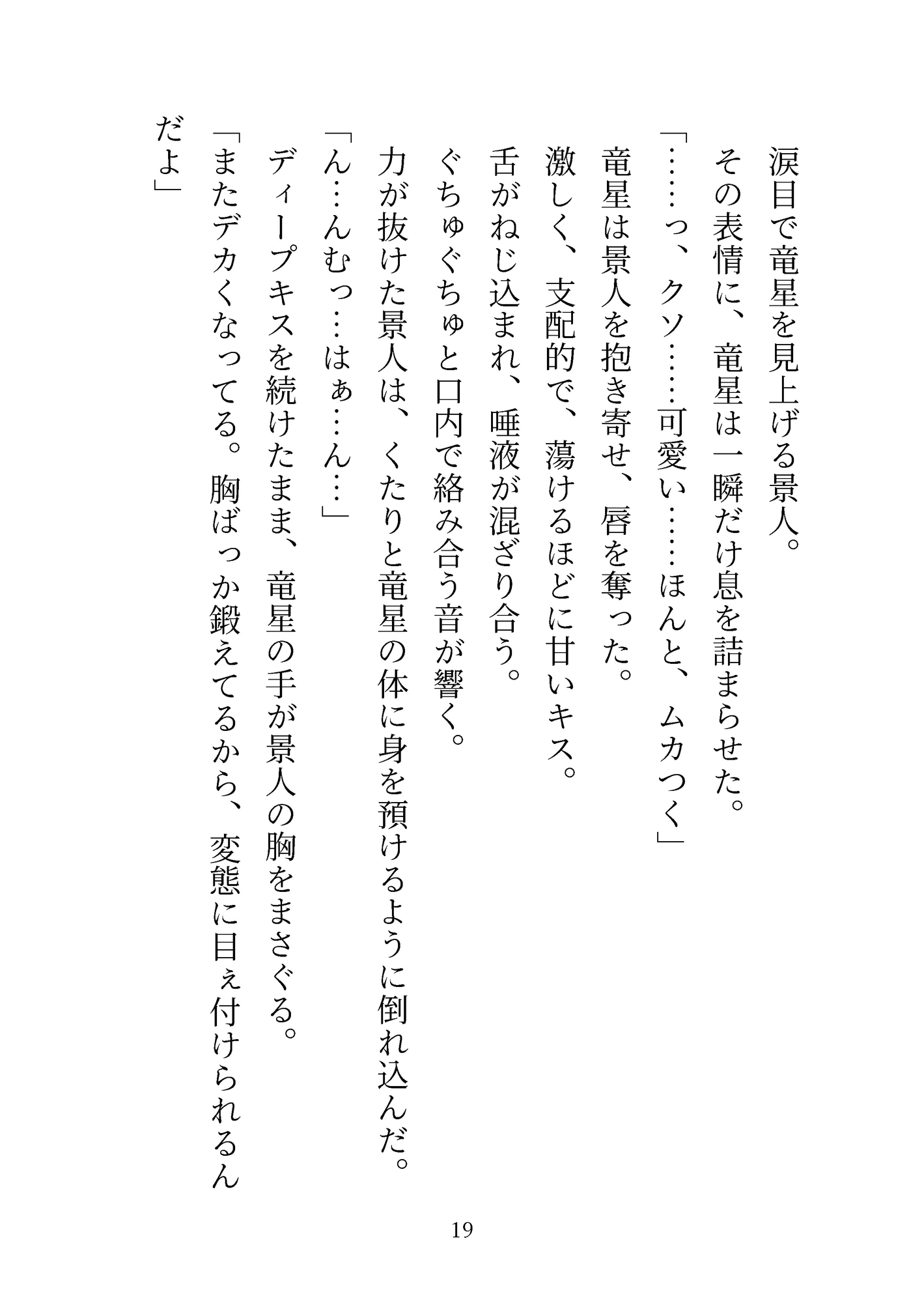 独占欲の強い竜星は激しい嫉妬を募らせ、景人をトイレに連れ込みお仕置きする。