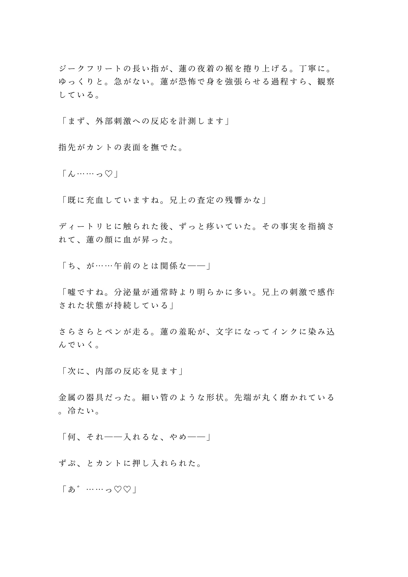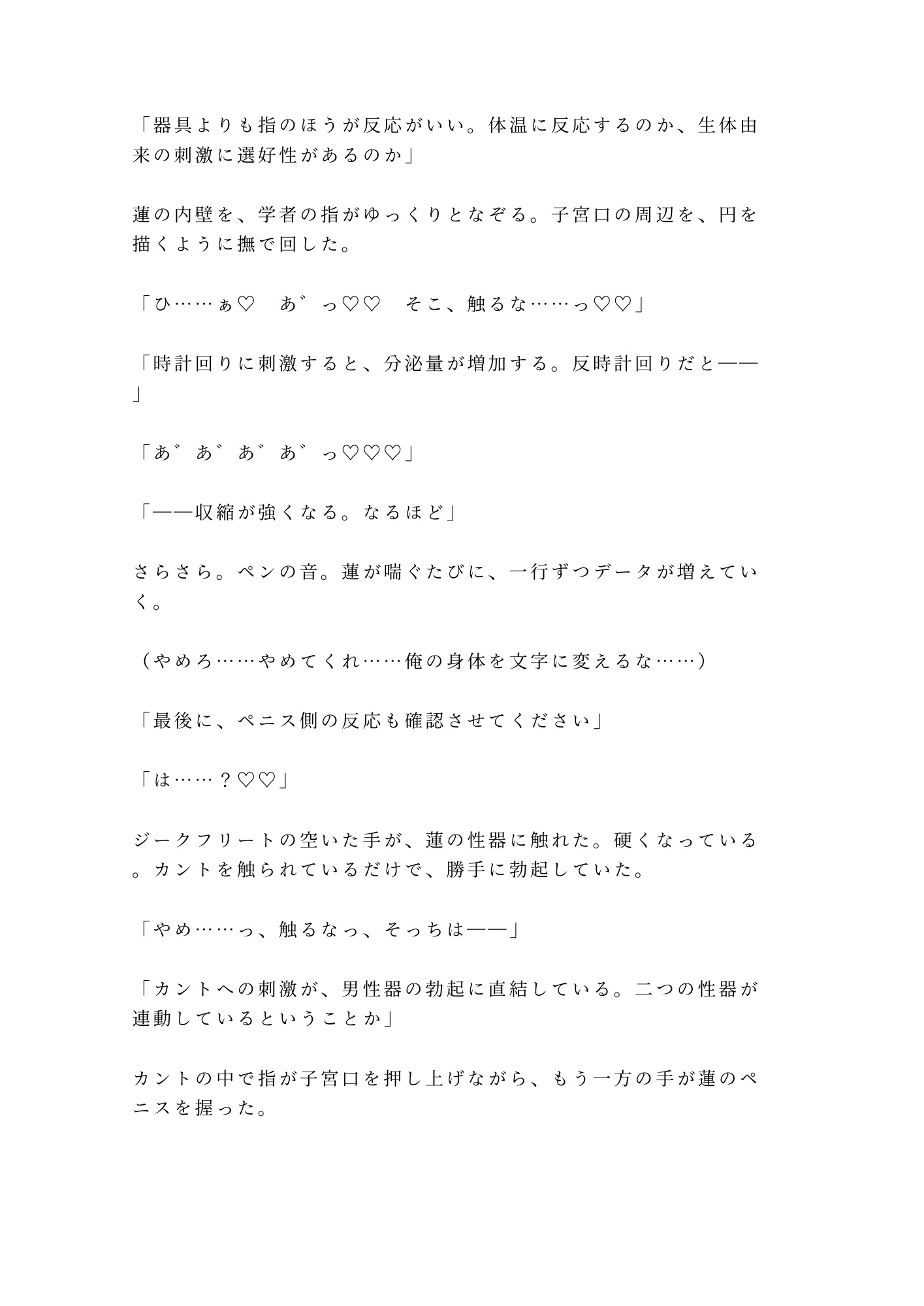 三人のαに代わる代わる暴かれるたび、蓮のカントは主の意思を裏切って濡れ、締まり、絶頂を重ねる。屈辱で泣きながら、身体だけが快楽に堕ちていく。「お前の子宮は国家の財産だ」——その言葉が、蓮の自尊心を抉るたびに、カントはさらに深く疼く。