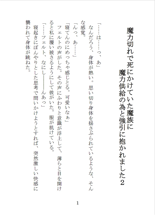 当作品は【魔力切れで死にかけていた魔族に魔力供給の為と強引に抱かれました】の続編作品となります。