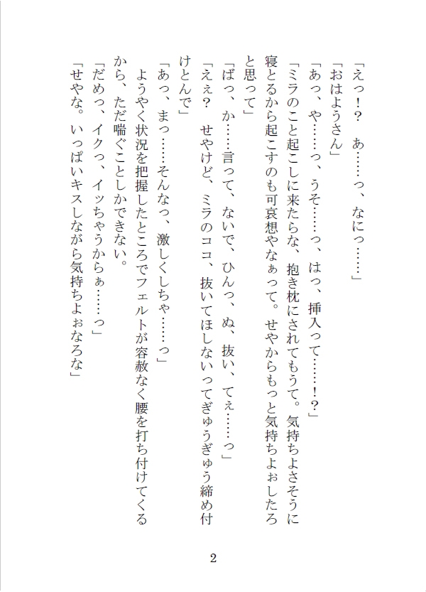 そうしてミラは嫉妬を抱えたフェルトに今日もまた抱かれることになるのだった。