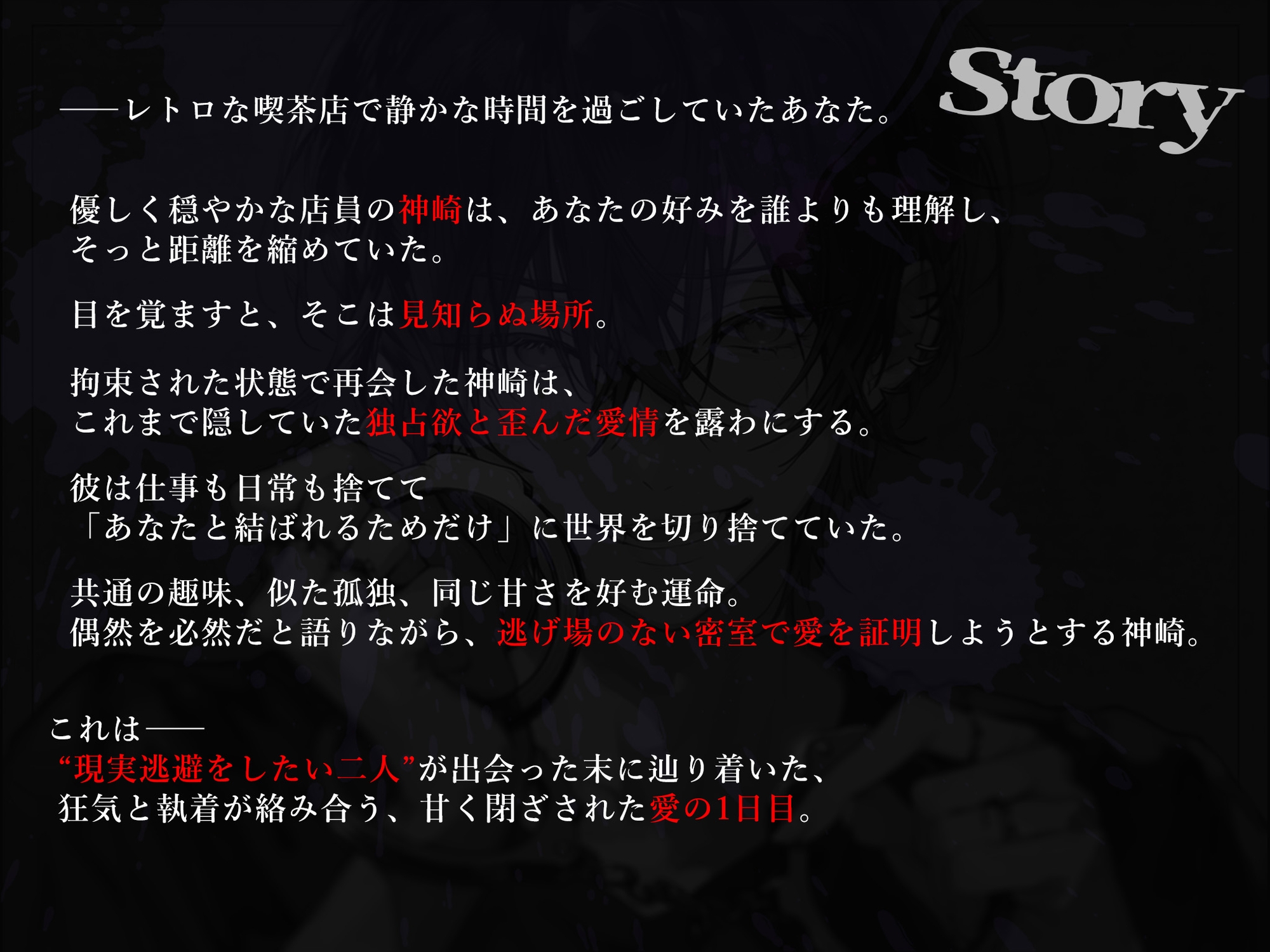 これは、ヤンデレ店員に捕らえられたあなたの――監禁生活1日目。■本編
