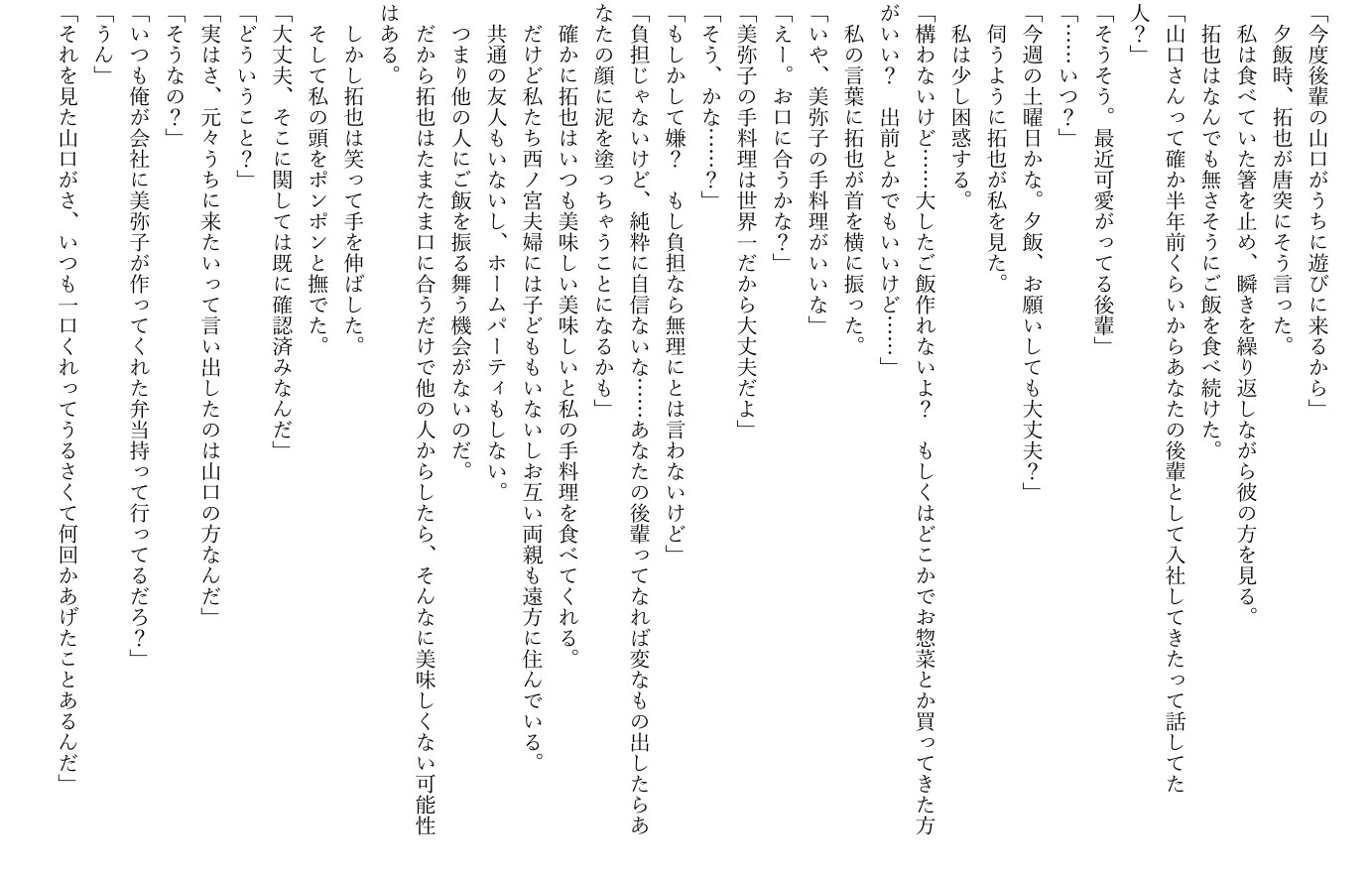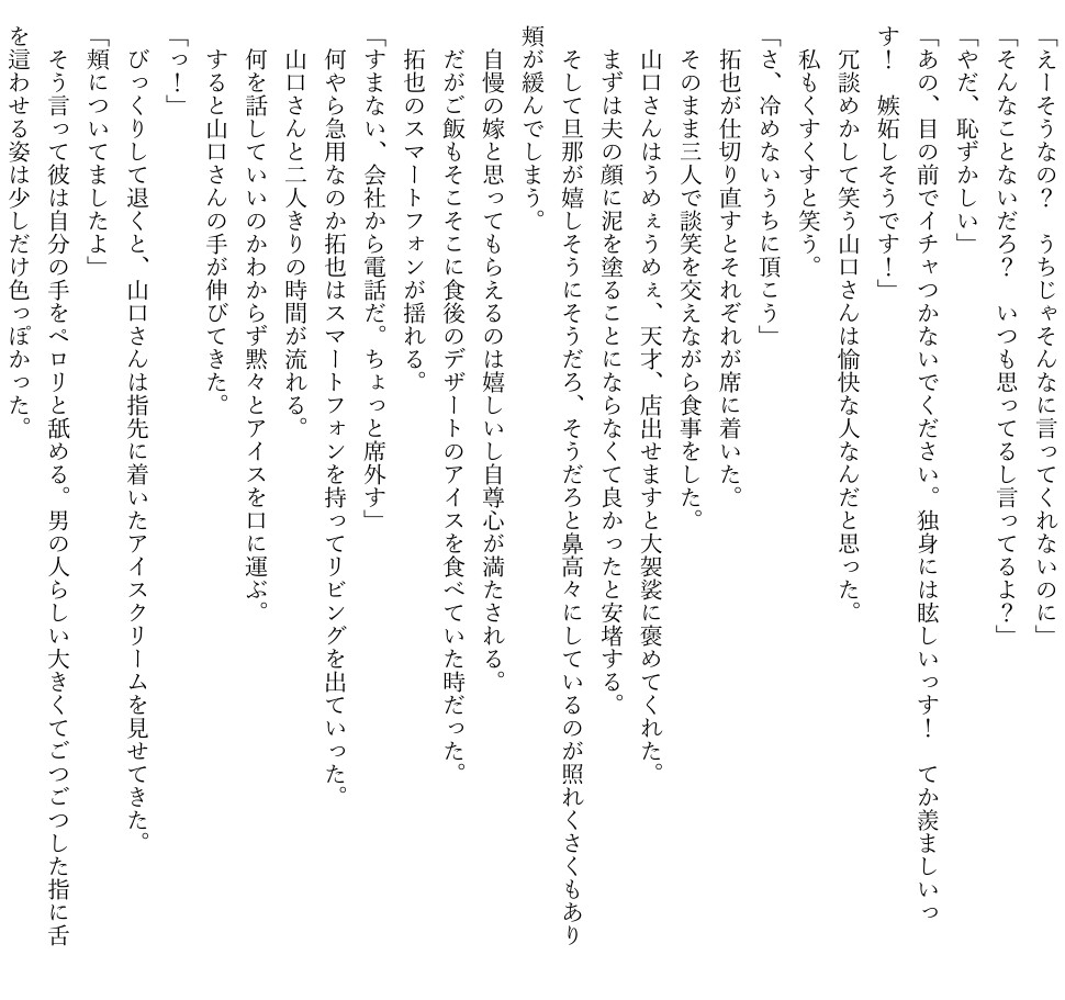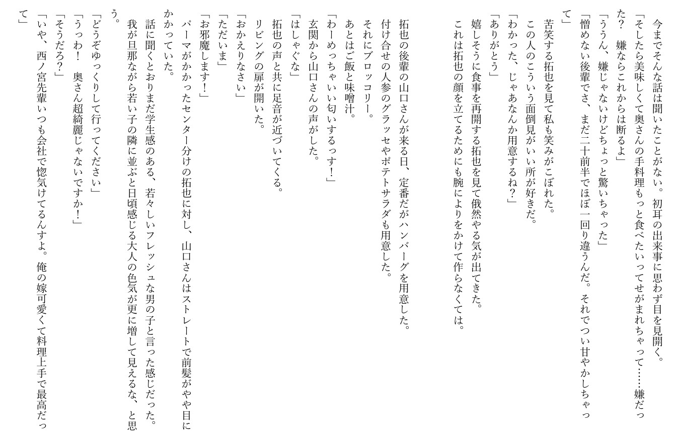 夫の拓也が連れてきたのは、年下で人懐っこい後輩・山口。