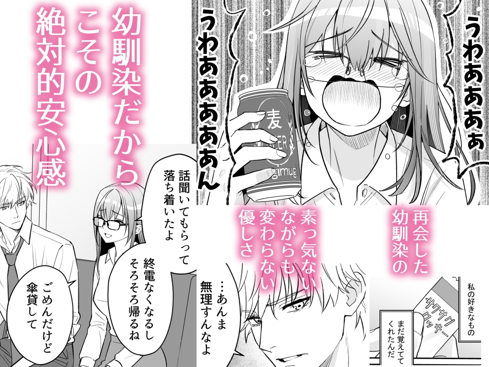 人生どん底の時、美琴は幼馴染の杉浦くんと再会した。ただの幼馴染だと思っていたのに… ある大雨の夜お互い長年胸に秘めた感情があふれ出しとうとう一線を越えてしまう。