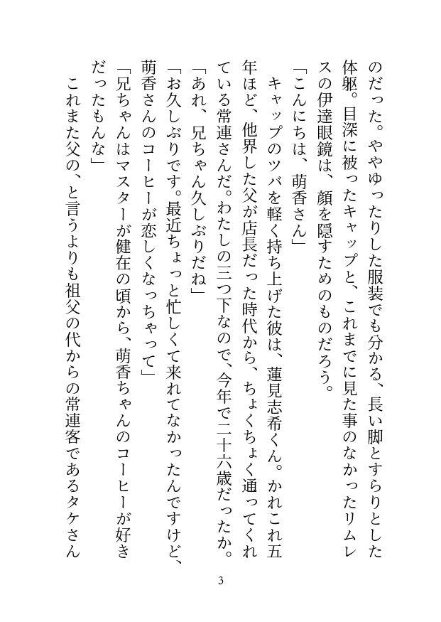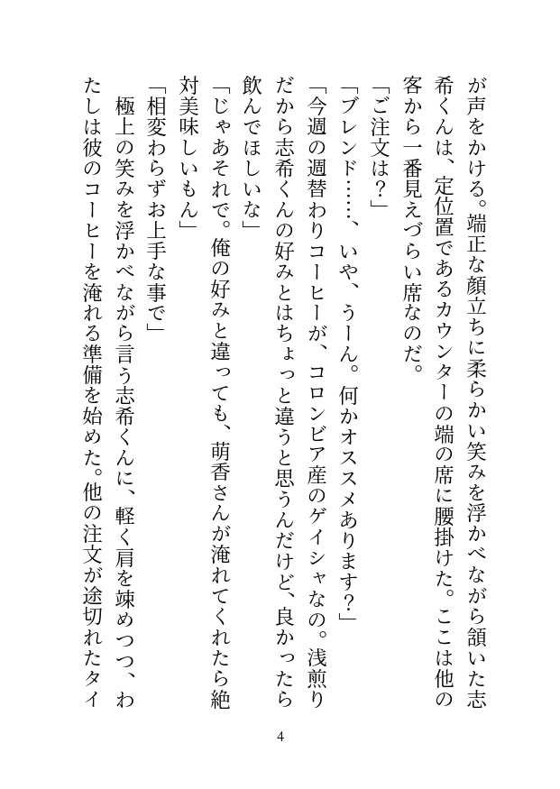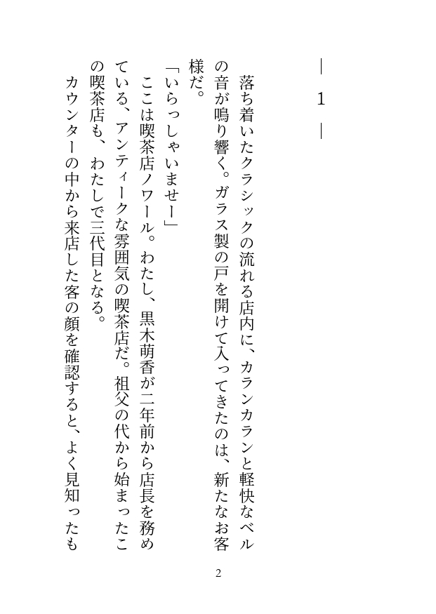 祖父の代から三代目となる喫茶店『ノワール』の店長である萌香は、自分の提供するコーヒーと寛ぎの時間にプライドを持っている。
